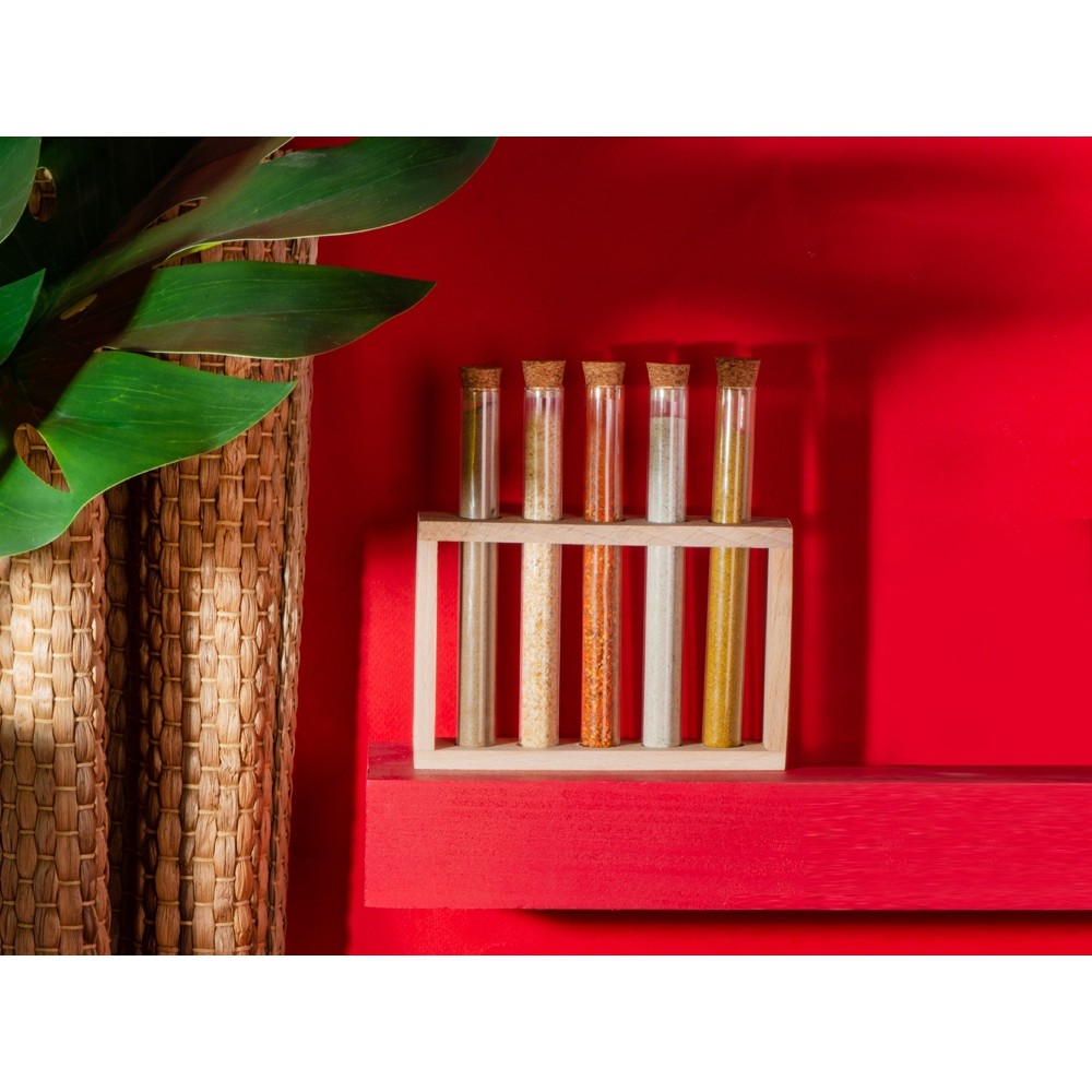 Размер товара (см) подставка- 15 х 3,5 х 10 см, колба со специями- d1,6 х 16