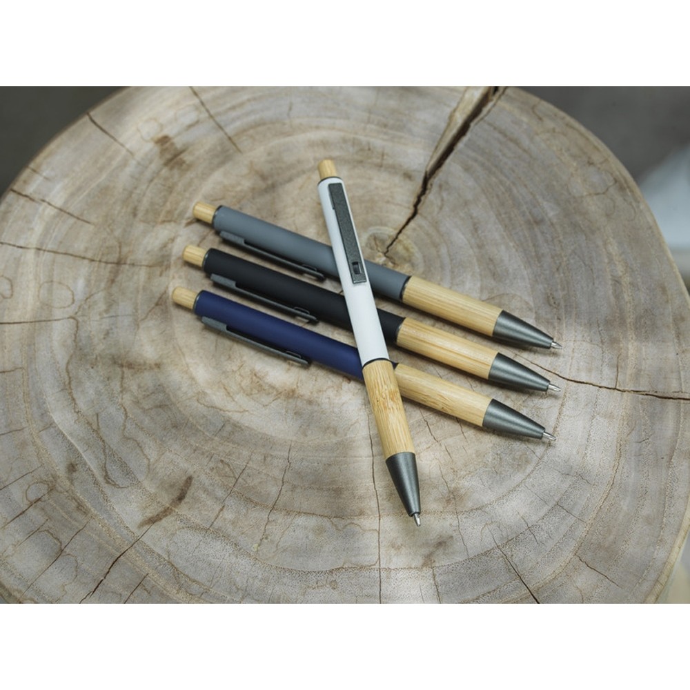 Шариковая ручка Darius изготовлена из переработанного алюминия, что требует меньше энергии, чем производство алюминия из сырья. Это также уменьшает количество отходов на свалках и помогает сохранять природные ресурсы для сокращения выбросов парниковых газов. Нажимная кнопка и нижняя часть корпуса изготовлены из бамбука. Цвет чернил: синий. Длина непрерывной линии: 800 метров. Размер пера: 1,00 мм. Recycled Aluminium.