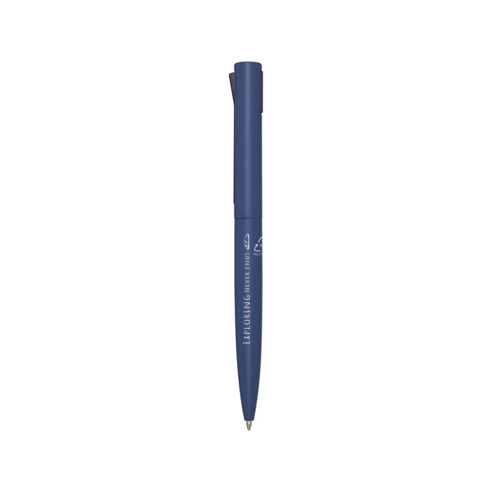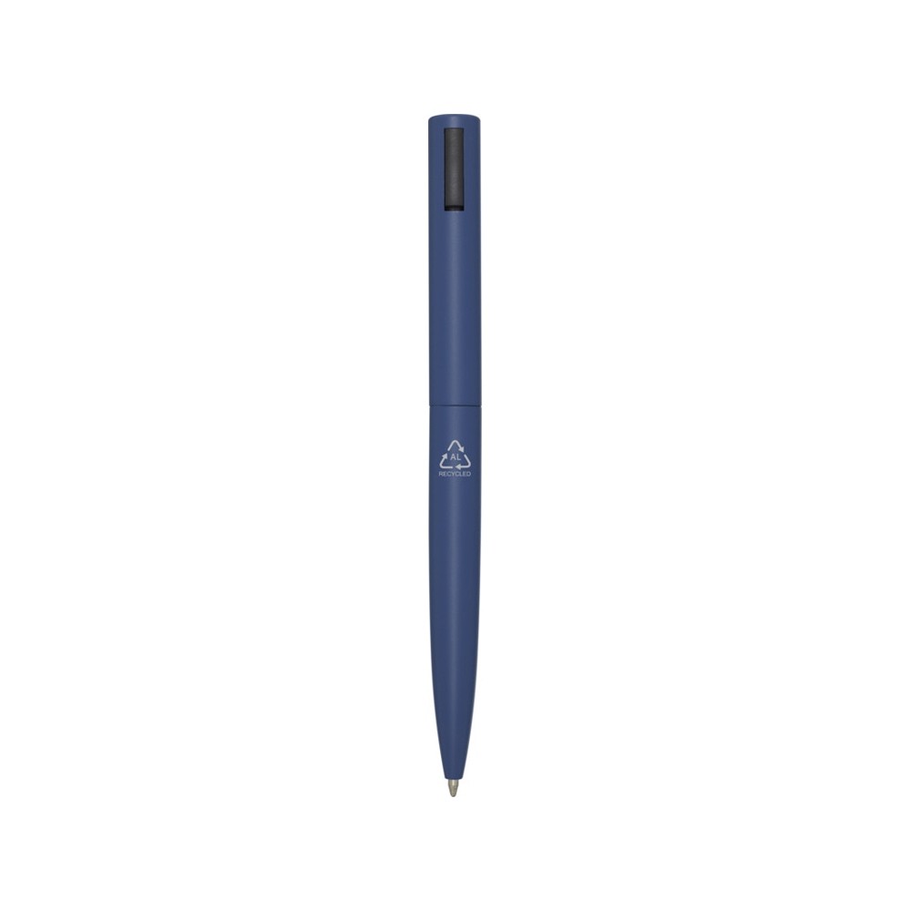 Шариковая ручка, верхняя часть корпуса которой изготовлена из переработанного пластика, а нижняя часть — из переработанного алюминия. Зажим изготовлен из железа. Цвет чернил: черный. Длина непрерывной линии: 1000 метров. Размер пера: 1,0 мм. Recycled Aluminium.