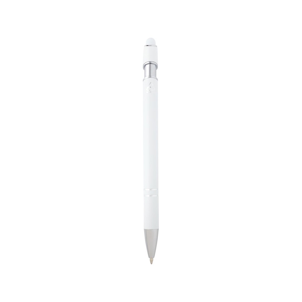 Шариковая ручка Kish с серебряным покрытием имеет корпус из переработанного алюминия и сенсорный стилус из силикона. Переработанный алюминий уменьшает количество отходов на свалках и помогает сохранять природные ресурсы для сокращения выбросов парниковых газов. Цвет чернил: синий. Длина непрерывной линии: 800 метров. Размер пера: 1,0 мм. Recycled Aluminium.