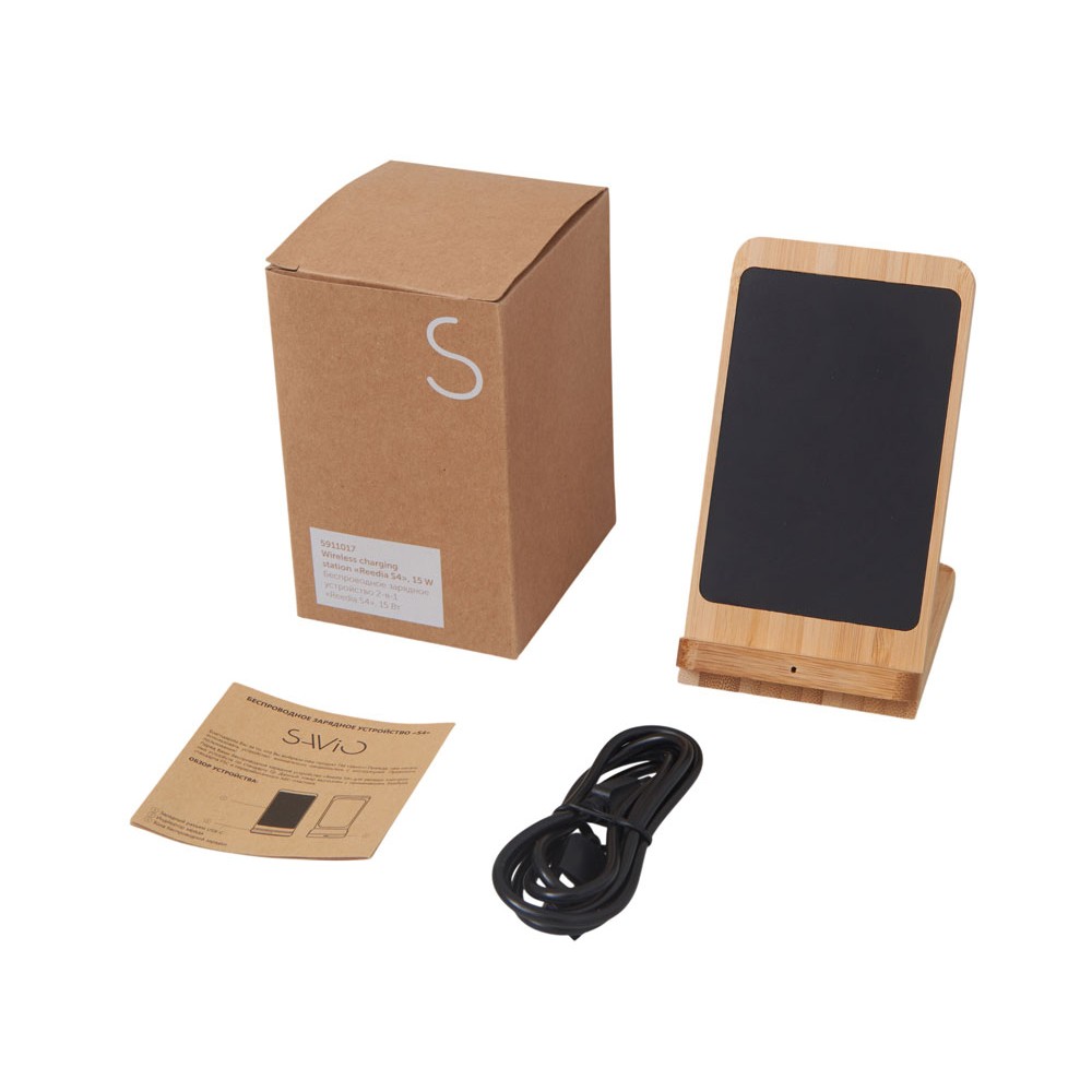 Технические характеристики Беспроводное зарядное устройство 2-в-1 с подсветкой лого «Reedia S4», 15 Вт, бамбук, черный