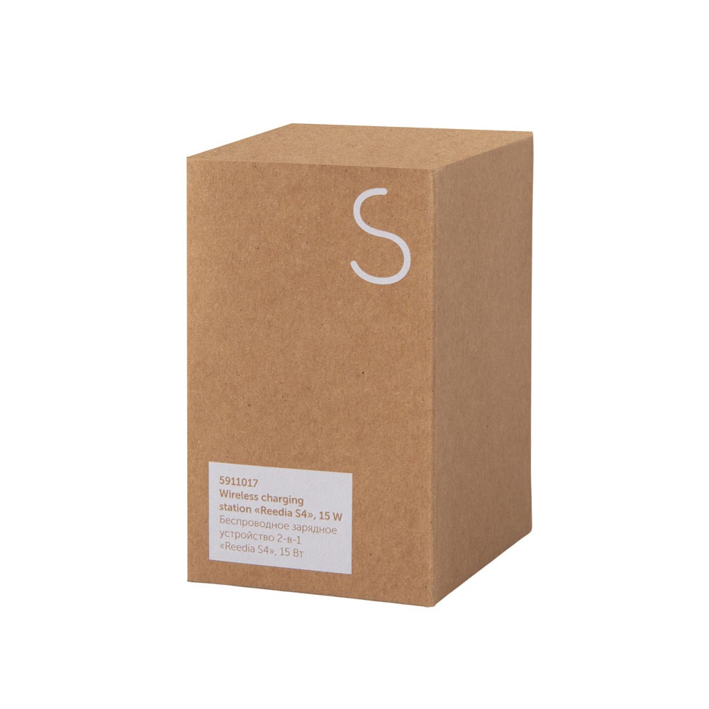 Беспроводное зарядное устройство 2-в-1 с подсветкой лого «Reedia S4», 15 Вт, бамбук, черный 1528 ₽