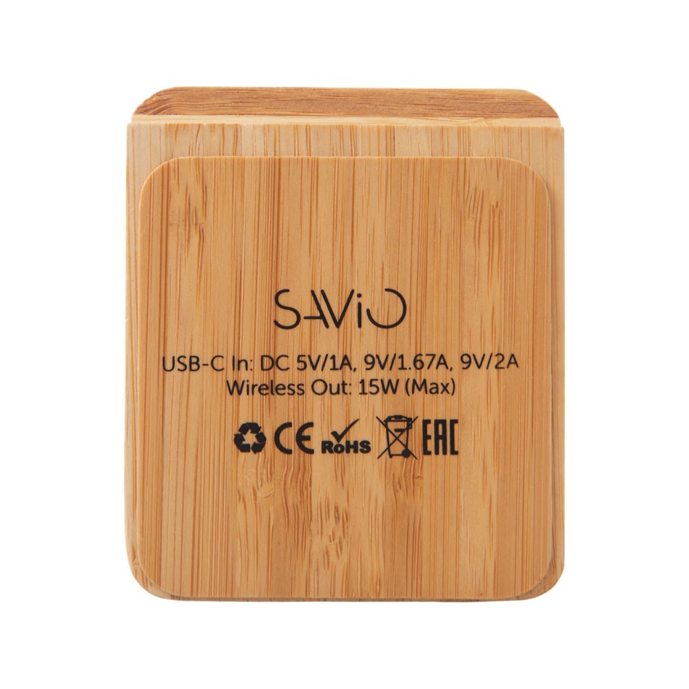 Беспроводное зарядное устройство 2-в-1 с подсветкой лого «Reedia S4», 15 Вт, бамбук, черный