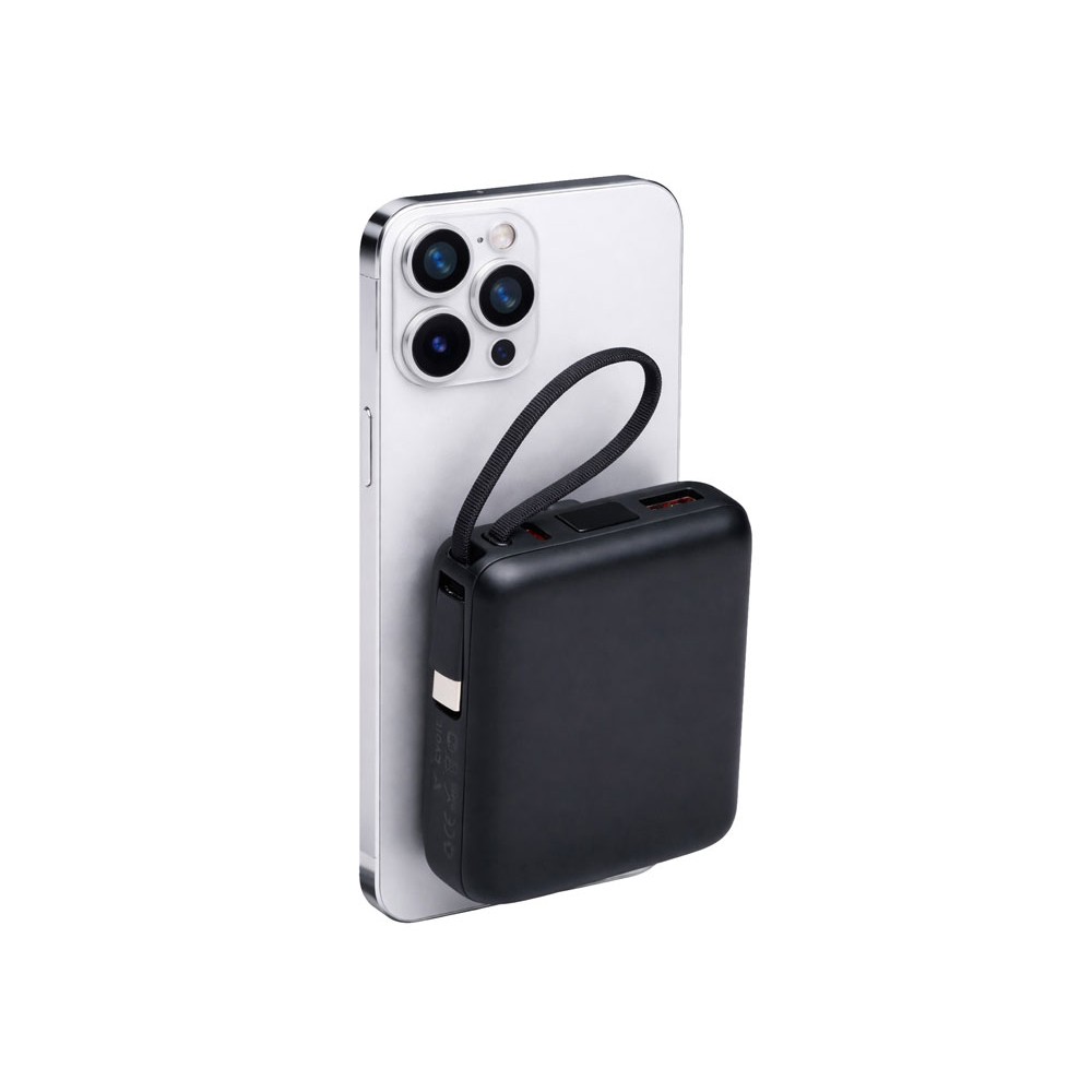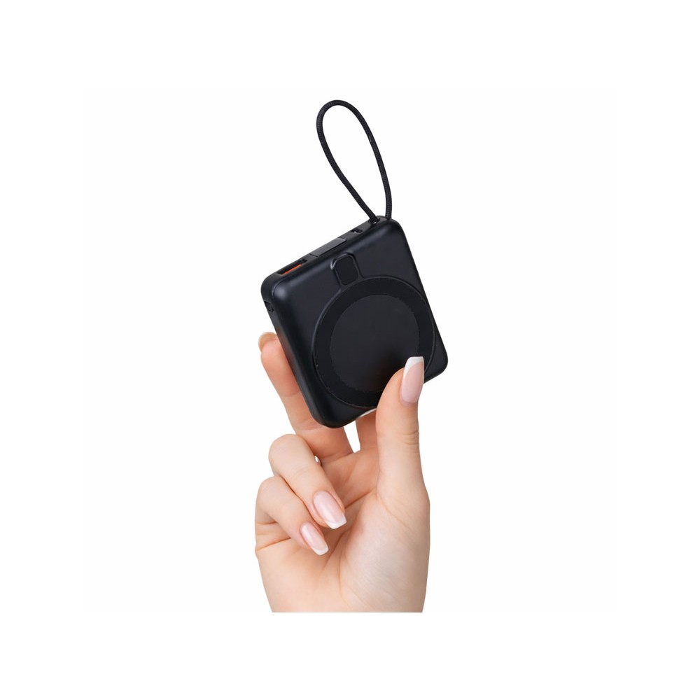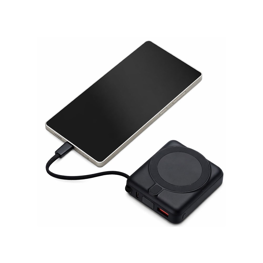 Магнитный пауэрбанк с эффектными возможностями брендирования. Компактный беспроводной аккумулятор с магнитным креплением MagSafe — идеальный корпоративный подарок для клиентов и партнеров. Уникальная особенность: логотип с подсветкой виден даже когда пауэрбанк прикреплен к телефону. Встроенный двусторонний USB-C кабель устраняет необходимость носить дополнительные провода — заряжайте устройства и сам аккумулятор одним кабелем.