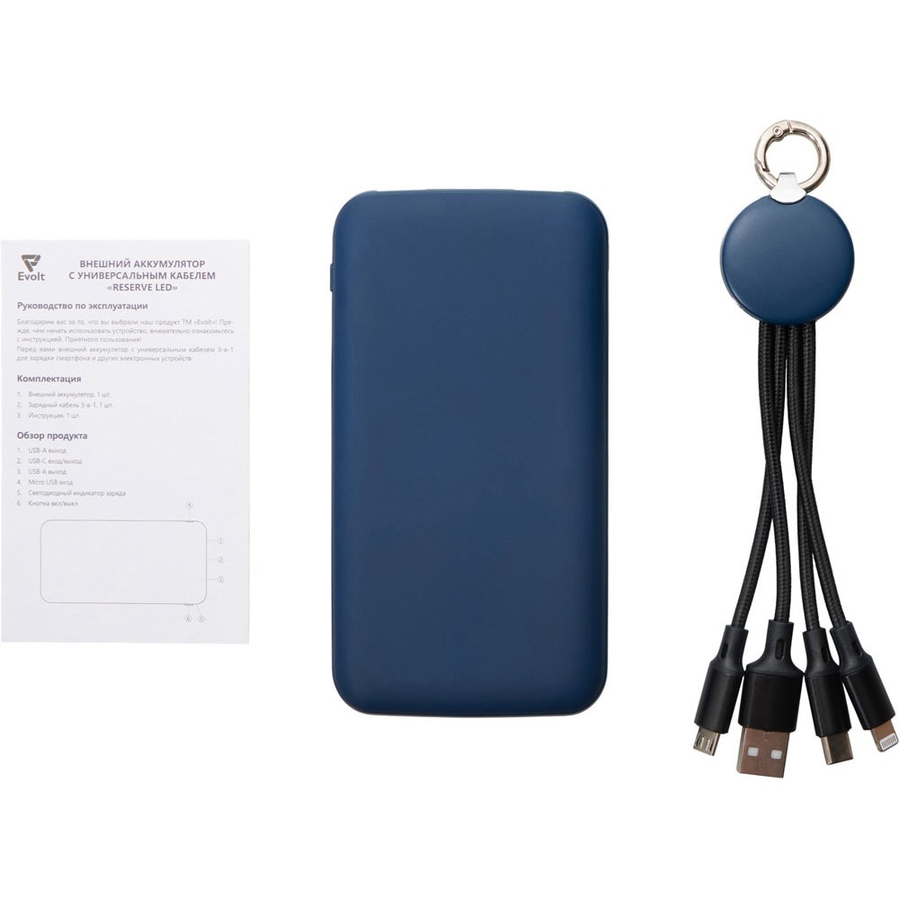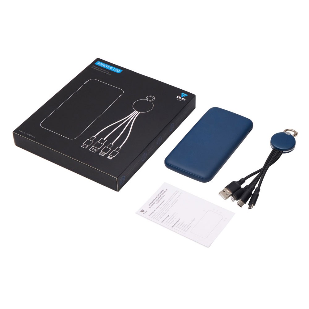 Практичный и стильный набор для зарядки в дороге: внешний аккумулятор на 10 000 мА·ч и универсальный кабель с тремя разъёмами (Micro USB, Lightning, USB Type-C). Оба элемента комплекта оснащены подсветкой логотипа — ваш бренд всегда на виду, даже в темноте. Повербанк обеспечивает 2–3 полных заряда смартфона и оснащён двумя выходами (USB-A и USB-C) для одновременной зарядки двух устройств. Поставляется в прочной подарочной коробке с шубером — идеальное решение для корпоративных подарков.
