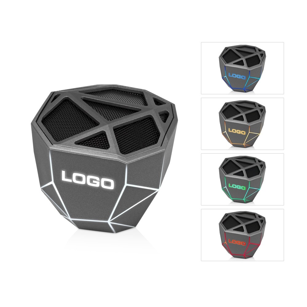 Беспроводная портативная колонка “Geo” с функцией расширенных басов изготовлена в дизайнерском стиле low-poly. Форма революционного Bluetooth-динамика напоминает мистический кристалл, а подсветка различных цветов (белая, синяя, красная, зеленая, оранжевая) добавляет таинственности. При этом ее яркость зависит от воспроизводимой музыки. Подсветку можно легко поменять, сделав три быстрых нажатия на кнопку включения и произойдет настоящая магия у вас в руках.