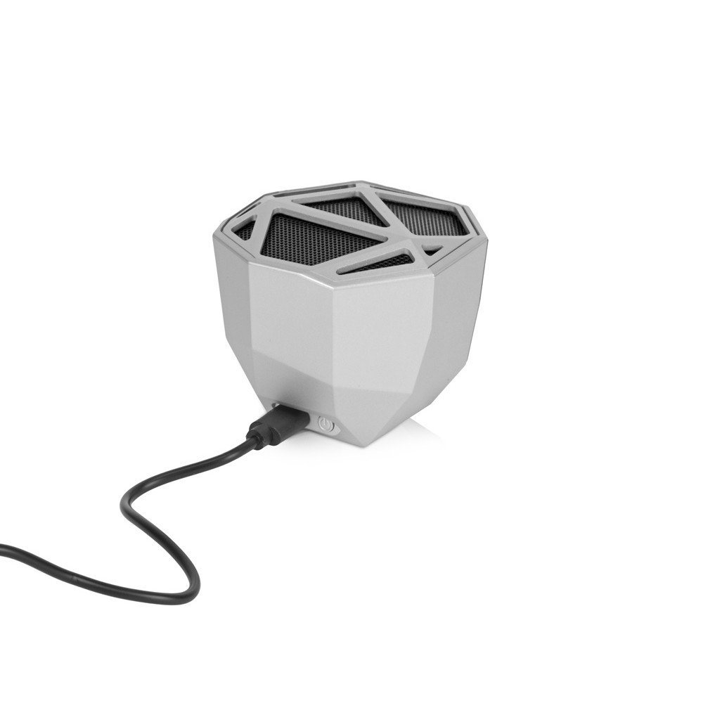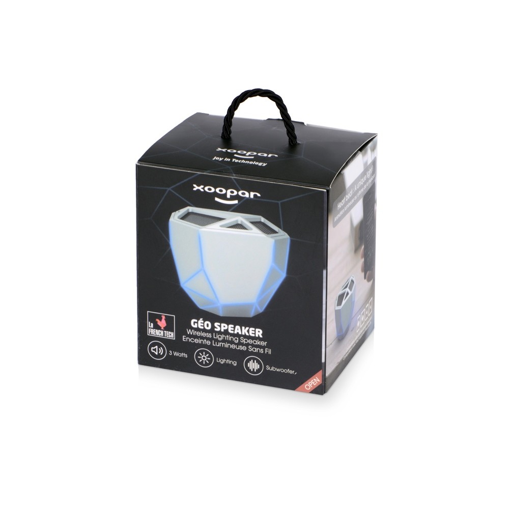 Беспроводной портативный динамик «Geo» — ультрасовременное решение для прослушивания аудио с функцией расширенных басов. Дизайн колонки выполнен в стиле low-poly, главная особенность которого — необычная геометрия форм. Визуальный эффект усиливается одноцветной подсветкой колонки, яркость которой меняется в зависимости от интенсивности звука.