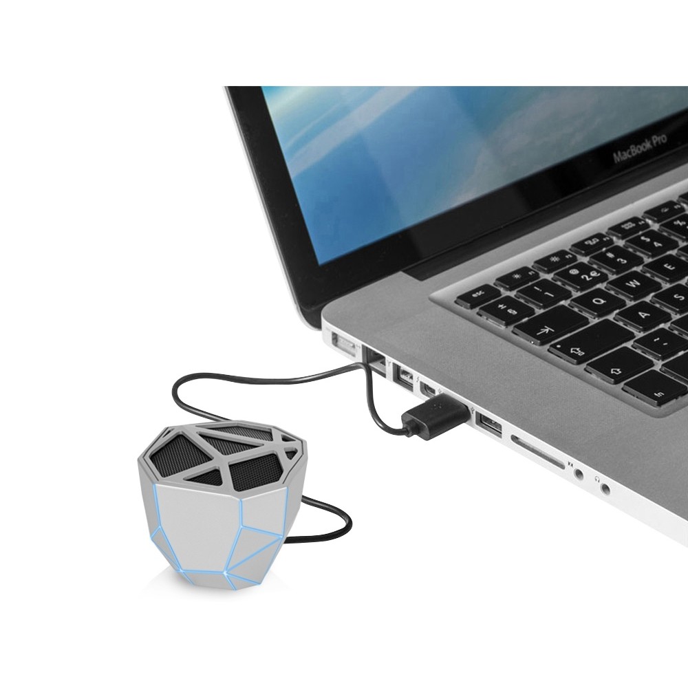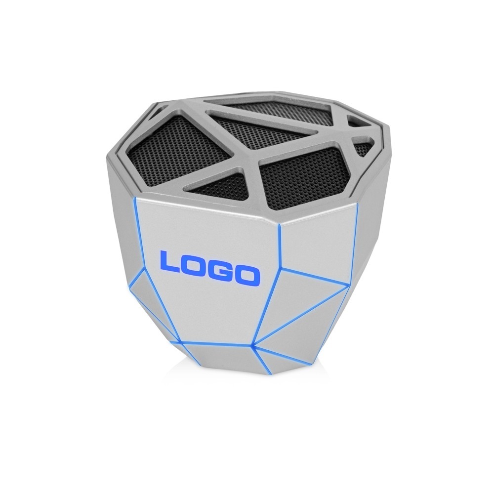• Портативная колонка «Geo», серебристый + синяя подсветка