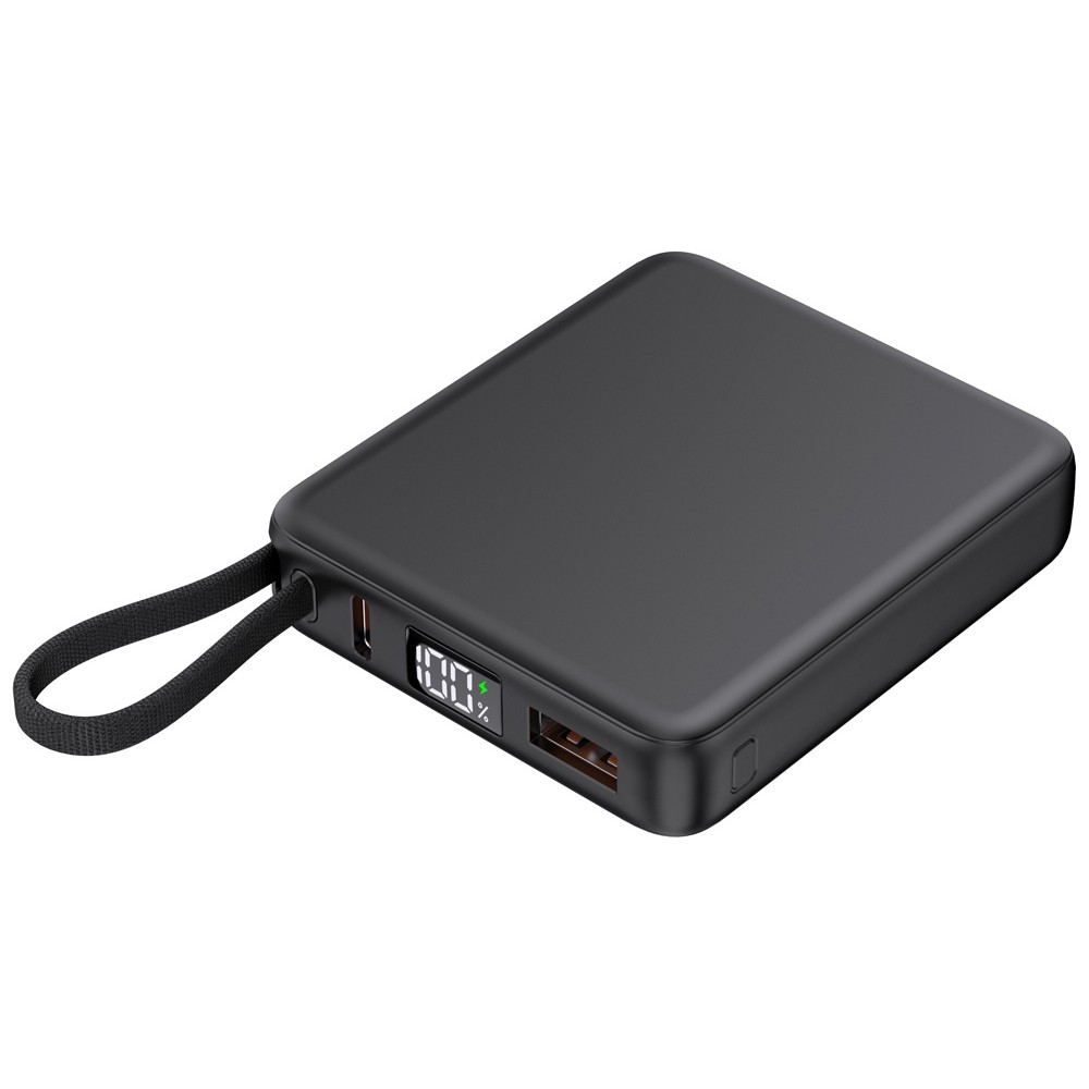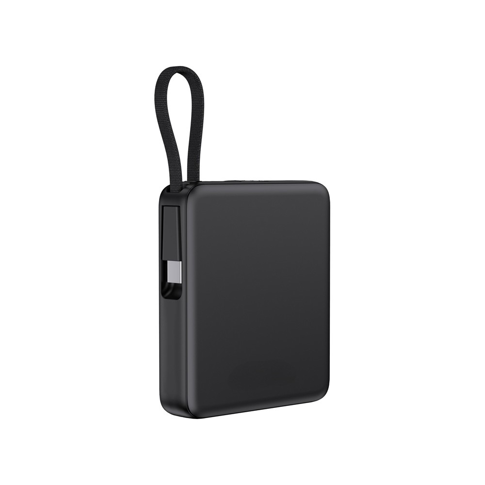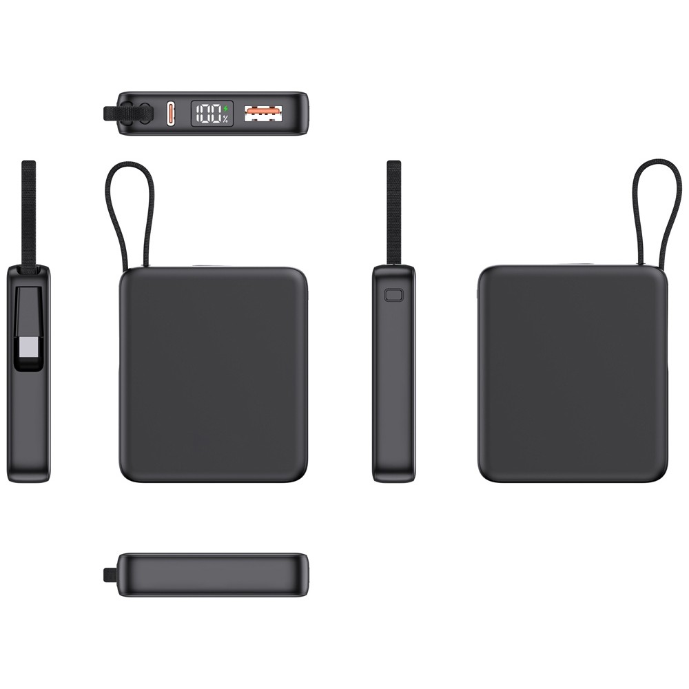 - Встроенный кабель Type-C и он же петелька для переноски: Современный стандарт Type-C, подходящий для зарядки всех последних популярных смартфонов, включая iPhone. Кабель также выполняет роль удобной петельки