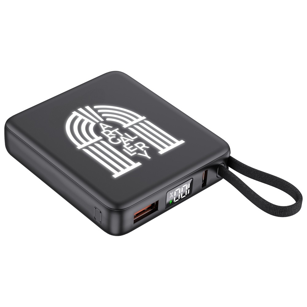 Этот современный повербанк, помещающийся в ладонь, станет незаменимым аксессуаром для тех, кто ценит удобство и стиль. Благодаря продуманному дизайну и инновационным решениям, он не только экономит место, но и подчеркивает индивидуальность своего владельца. А возможность брендирования светящимся лого делает его мощным инструментом для рекламы вашего бизнеса.
