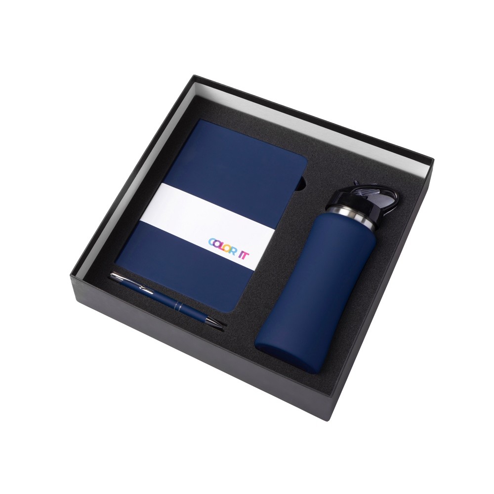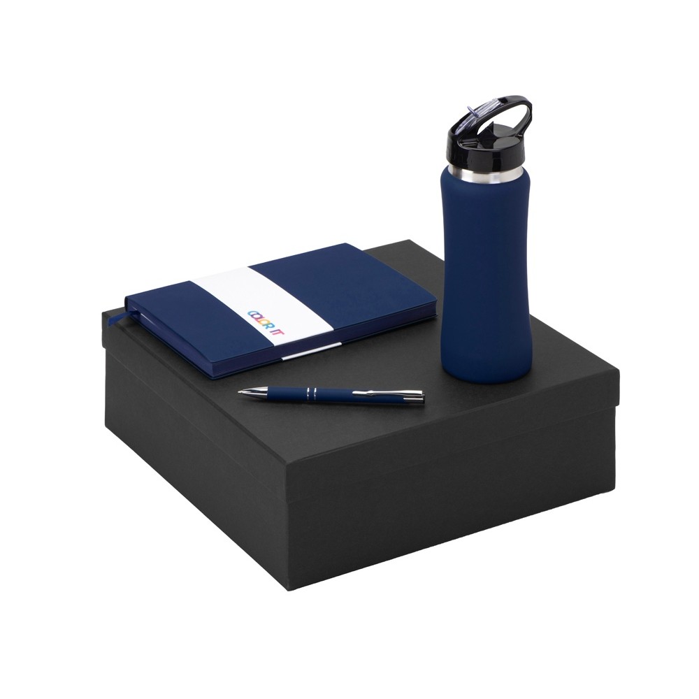 • Подарочный набор с блокнотом С1, металлической ручкой и бутылкой для воды, темно-синий