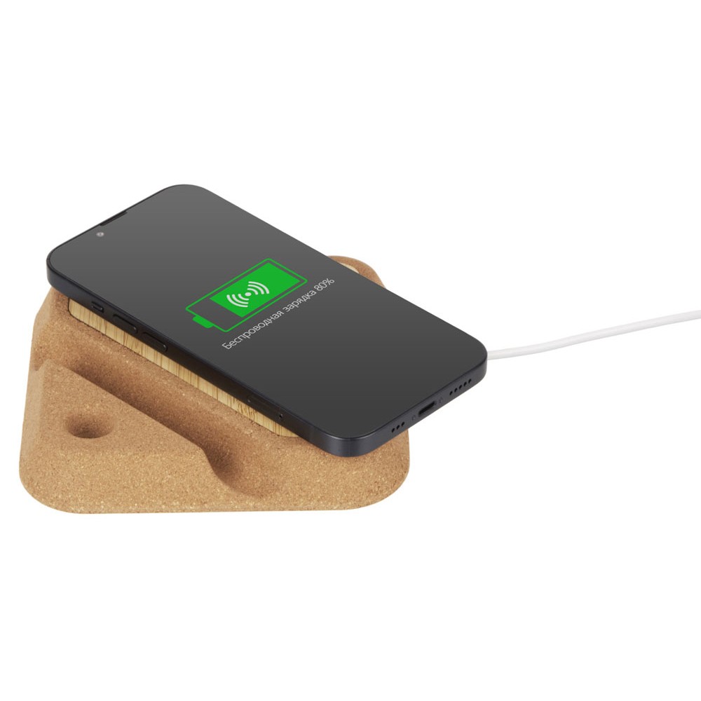 Зарядная станция поддерживает стандарт Qi, что позволяет ей работать с большинством современных смартфонов, включая iPhone и Android-устройства. Просто положите свой телефон на зарядную площадку, и он начнёт заряжаться автоматически.