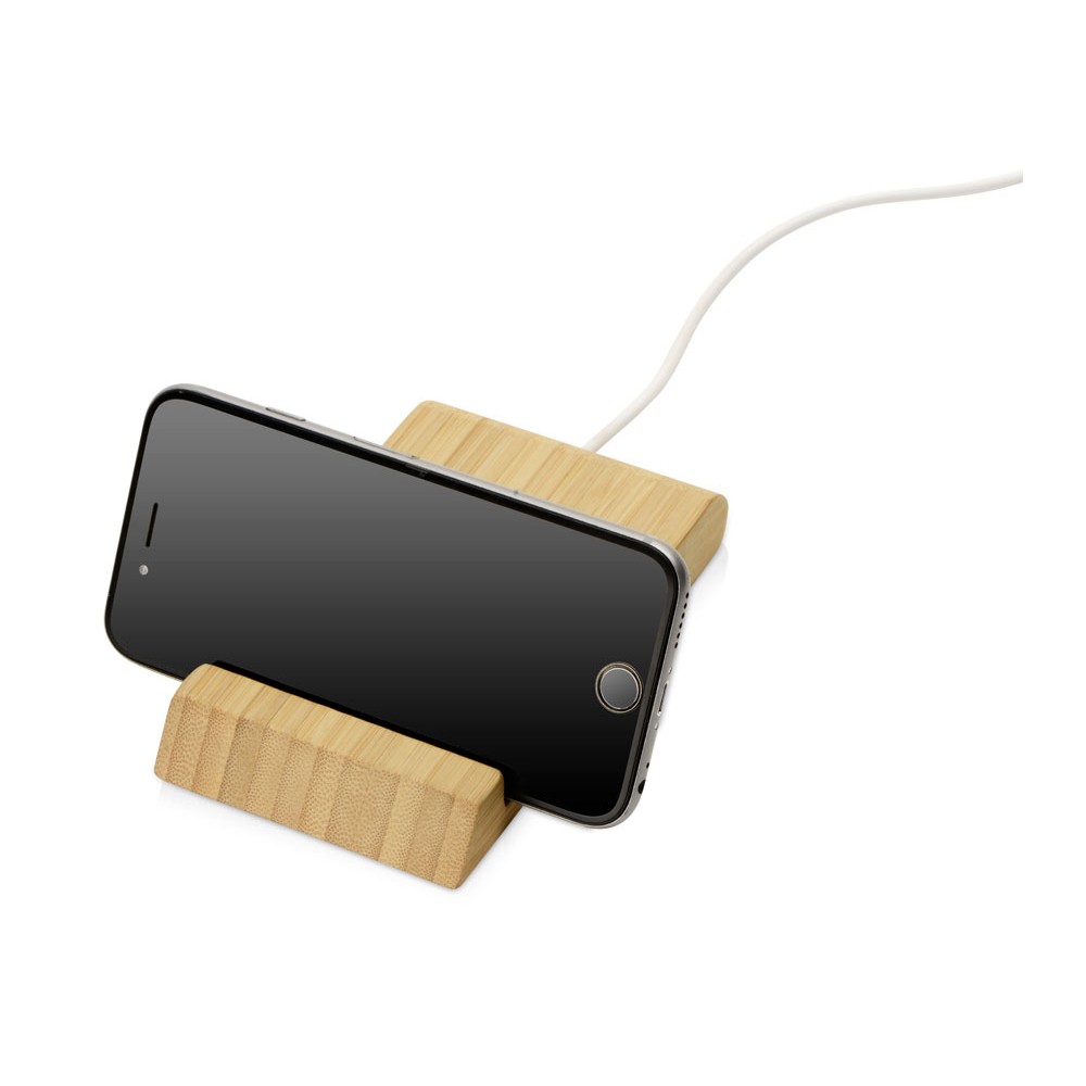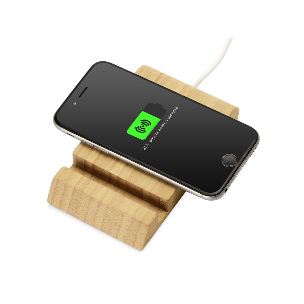 Беспроводное зарядное устройство «Jetty» в корпусе из натурального бамбука поддерживает функцию быстрой зарядки Qi-совместимых моделей смартфонов. Также устройство можно использовать как подставку для смартфона.