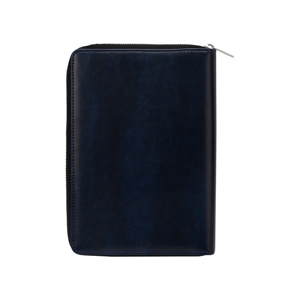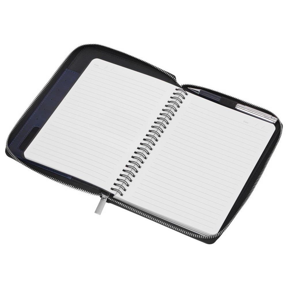 Бизнес блокнот Fabrizio состоит из пенала на молнии выполненного из искусственной кожи, и сменной тетради на 80 листов на кольцах с перфорированными линованными листами белого цвета.
