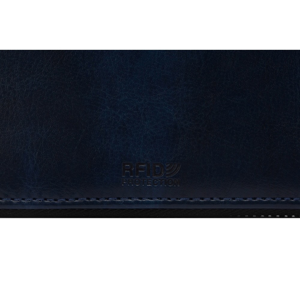 Блокнот снабжен 5 отделениями для карт и RFID защитой, которая охраняет вашу личную и финансовую информацию от мошенников. Внутри блокнота есть петля для ручки в тон (ручка в комплект не входит).