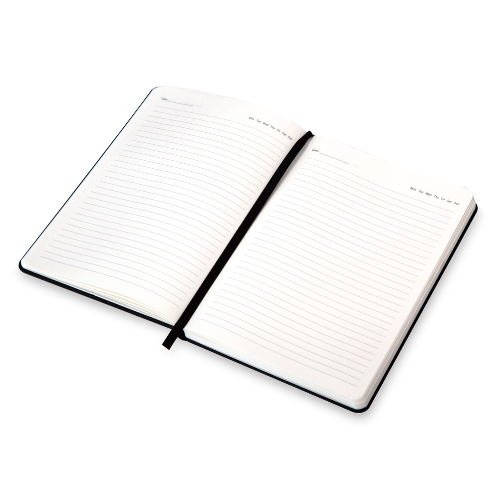 В блокноте 256 страниц, даты не указаны, это удобно тем, что вы можете самостоятельно их вписать в специальное поле или выделить нужный день недели.