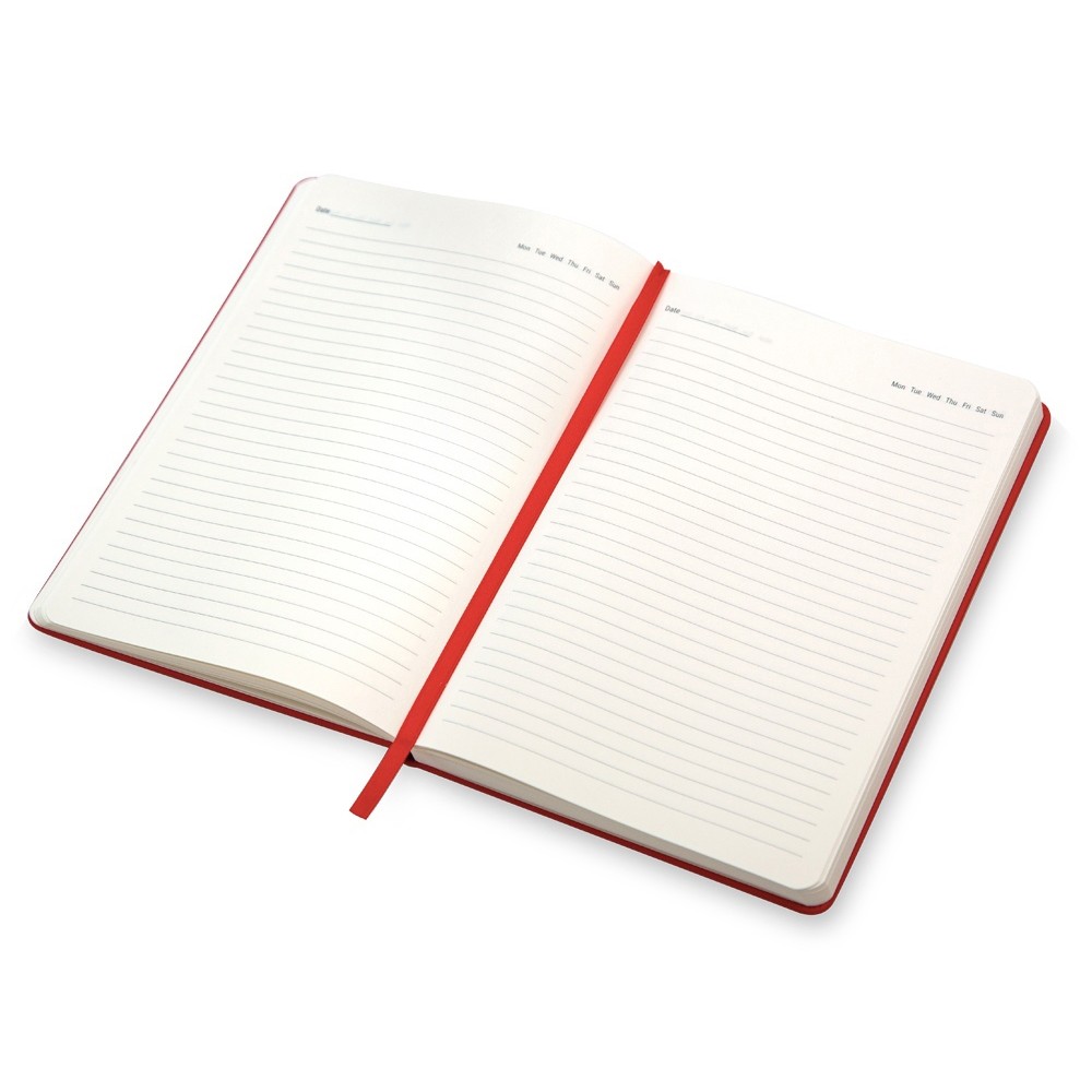 В блокноте 256 страниц, даты не указаны, это удобно тем, что вы можете самостоятельно их вписать в специальное поле или выделить нужный день недели.