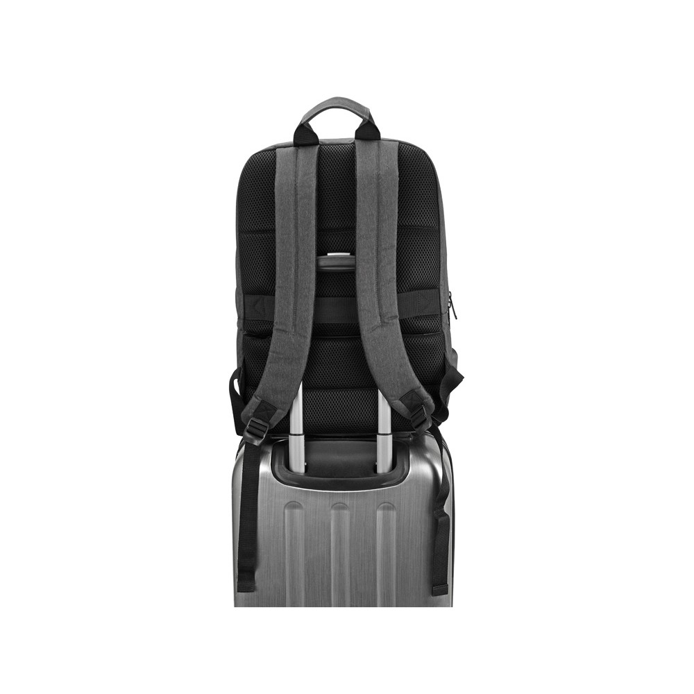 • Ремень на задней спинке рюкзака для надежной фиксации аксессуара на телескопической ручке чемодана или сумки на колесиках.