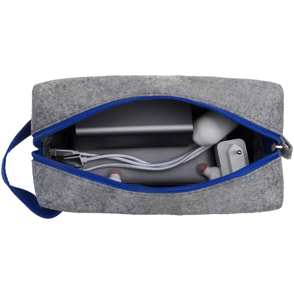 Органайзер для электроники и проводов "Felt" из RPET-фетра с ручкой, серый с синим