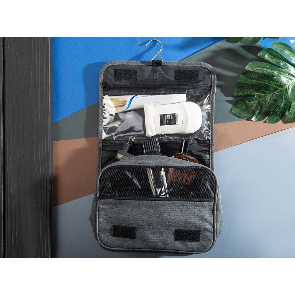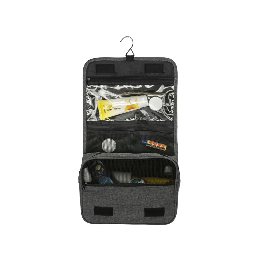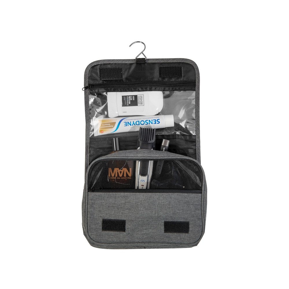 Несессер Planar оснащен металлическим крючком для подвешивания, который в сложенном виде убирается внутрь и не будет вам мешать. Для переноски несессер имеет ручку снаружи, а еще вы найдете плоский вместительный карман на его задней стороне. Клапан несессера закрывается на липучки и имеет три кармана — большой на молнии из прозрачного материала, который легко моется, даже в случае, если флакон изнутри разгерметизировался, и два из сетки, куда можно положить необходимые мелочи и которые удобнее использовать в висящем виде.