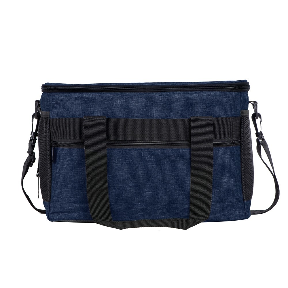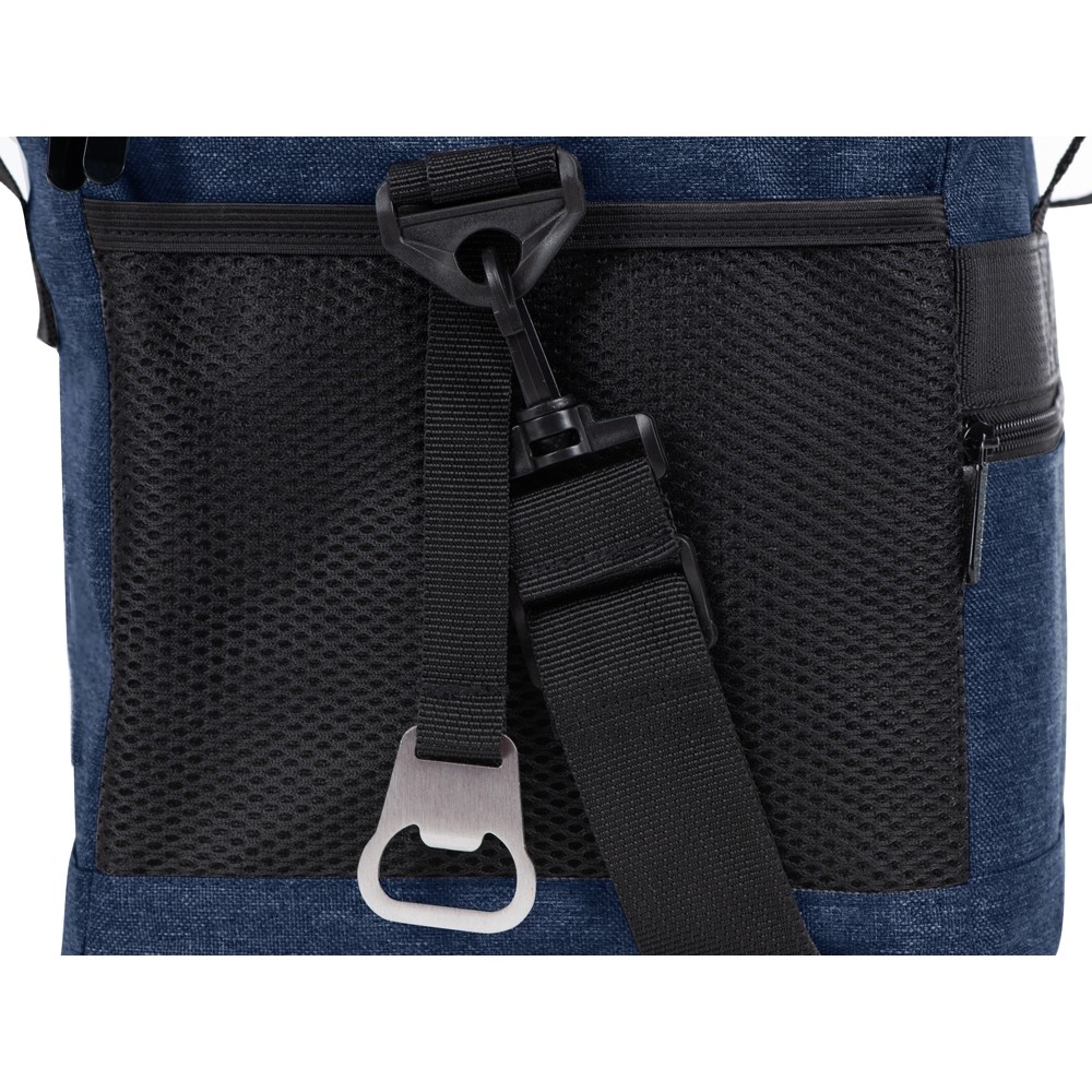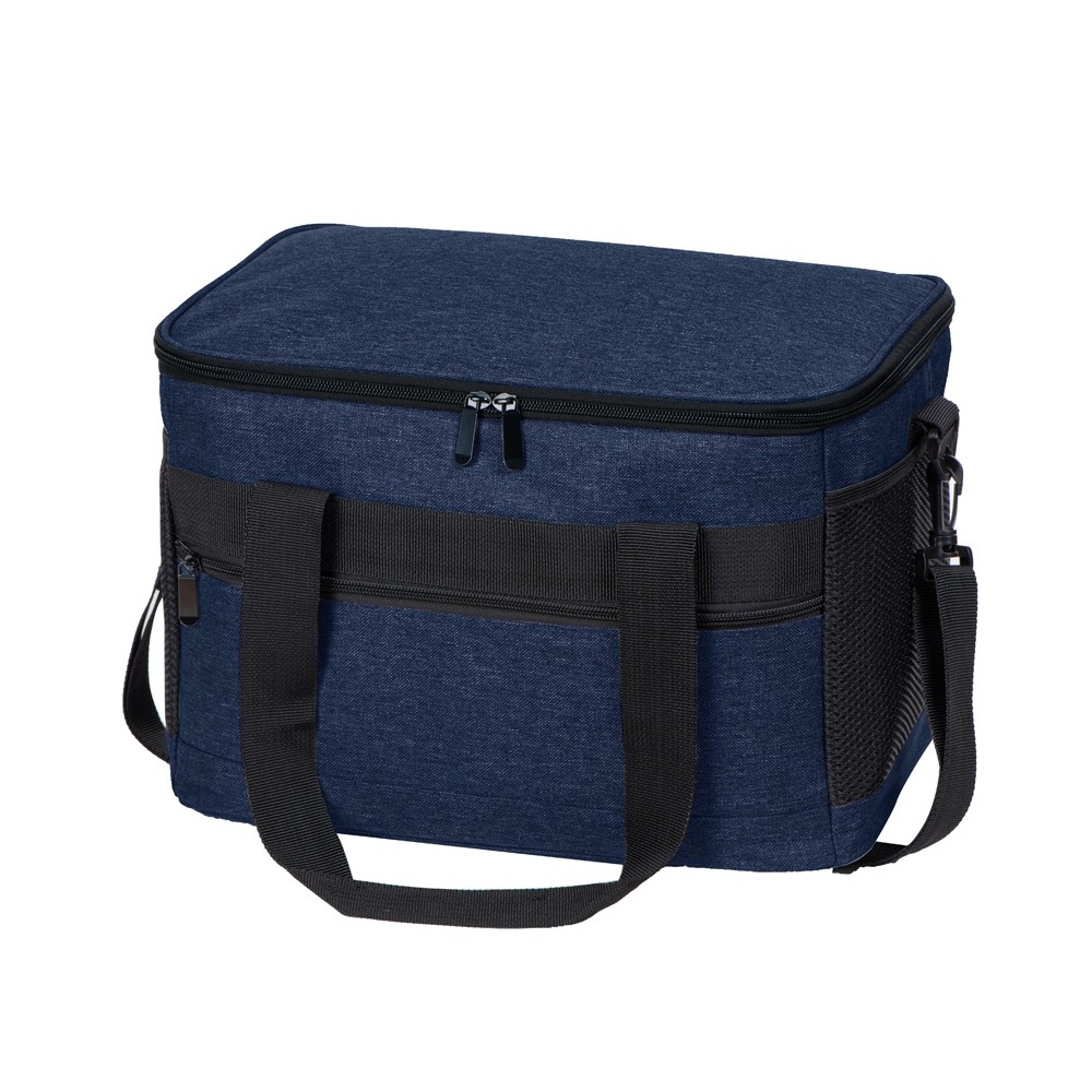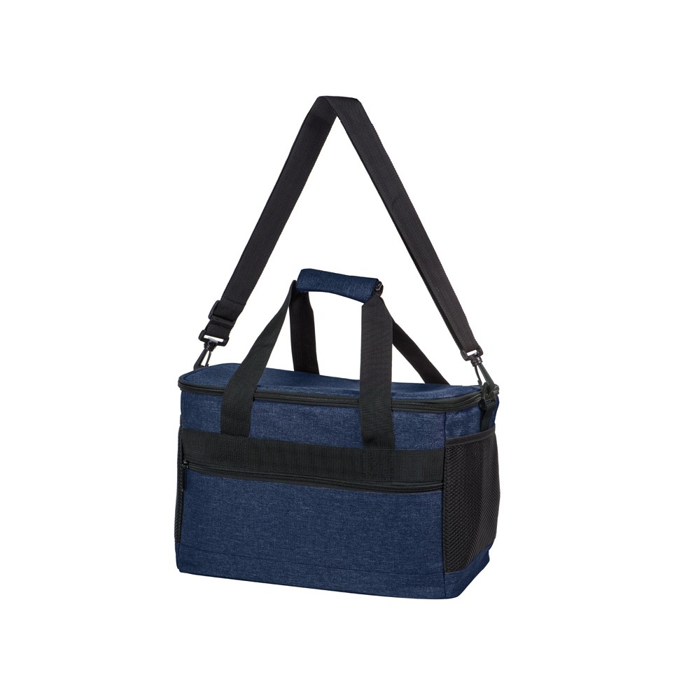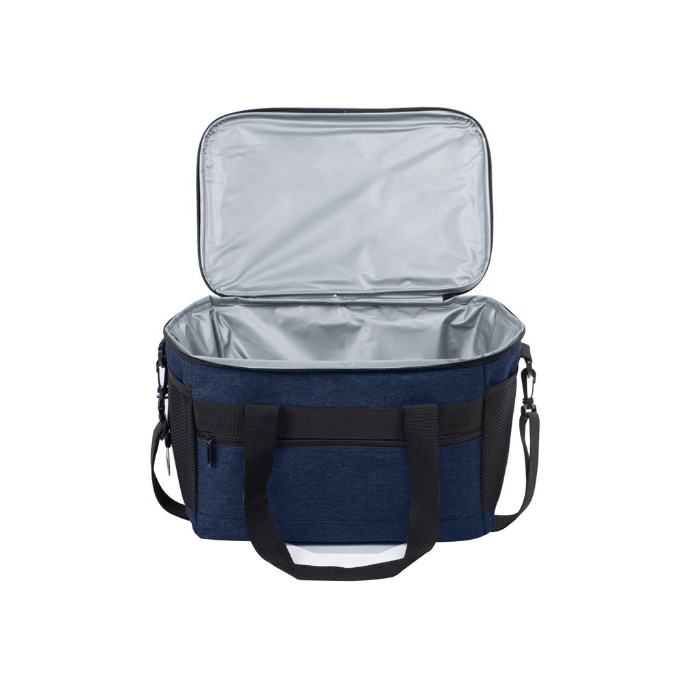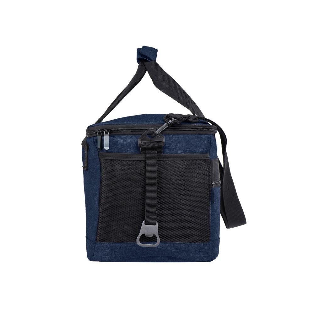 Вместительная сумка-холодильник со специальной конструкцией дна, предотвращающей протекание наружу жидкости от размораживания. Поверхность сумки всегда остается сухой. Основное отделение и карман спереди на молнии. Сбоку 2 сетчатых кармана. Съемный плечевой ремень регулируется по длине. Короткие ручки фиксируются вместе застежкой-липучкой. В комплекте открывалка для бутылок.