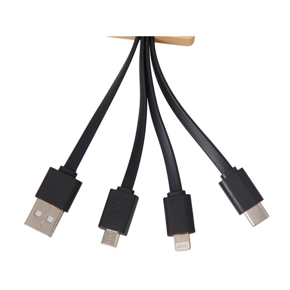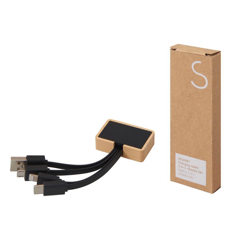 • Кабель 3-в-1 с подсветкой лого «Reedia S6», бамбук, черный