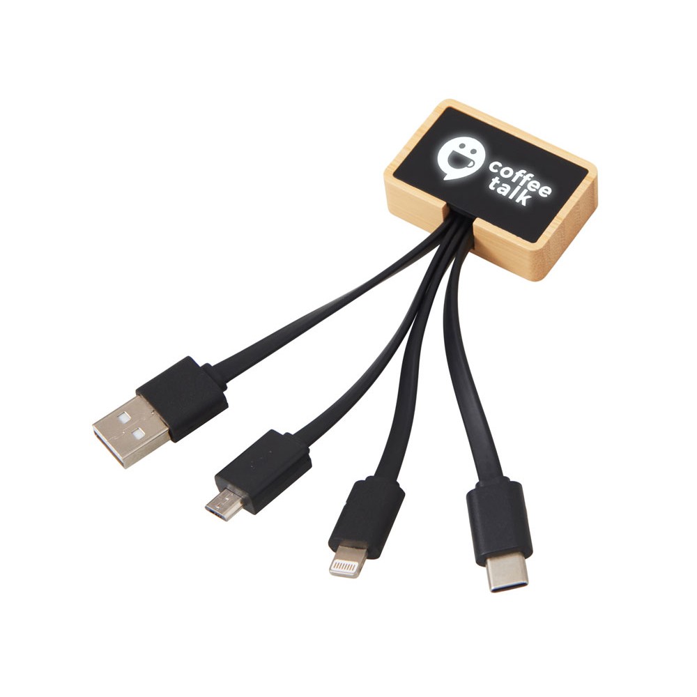 Кабель 3-в-1 с подсветкой лого «Reedia S6», бамбук, черный