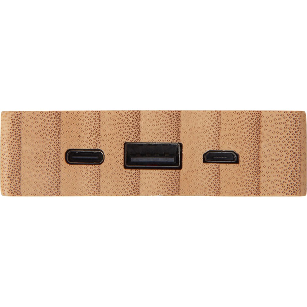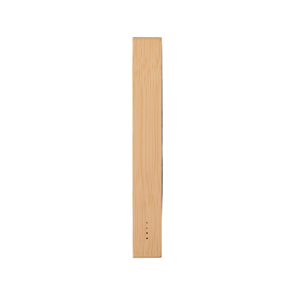 Внешний аккумулятор ёмкостью 10 000 мАч, созданный для тех, кто ценит стиль, функциональность и заботу о природе. Корпус устройства изготовлен из натурального бамбука и переработанного ABS-пластика — это не только придаёт ему уникальный эстетичный вид, но и снижает экологический след. С одной стороны — солнечная панель, позволяющая подзаряжать устройство от солнца, с другой — панель с возможностью нанесения светящегося логотипа компании или бренда. Идеальное решение для путешественников, офисных сотрудников и корпоративных подарков — технологично, стильно и ответственно.