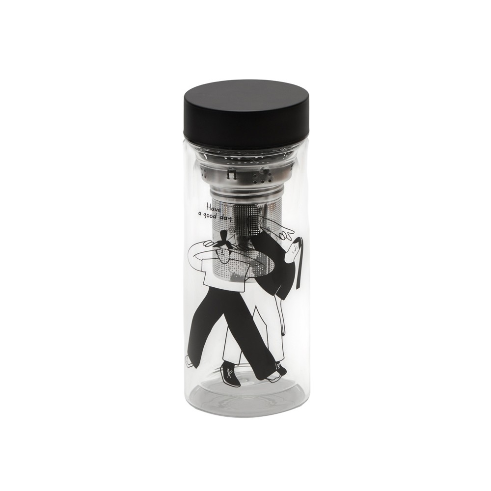 Термобутылка из жаростойкого боросиликатного стекла с углубленным составным ситечком. Позволяет сохранить температуру ваших любимых напитков течение 4-х часов. Корпус и стальная крышка идеально подходят под логотип, а общий минималистичный дизайн подчеркнет его. Объем 500мл.