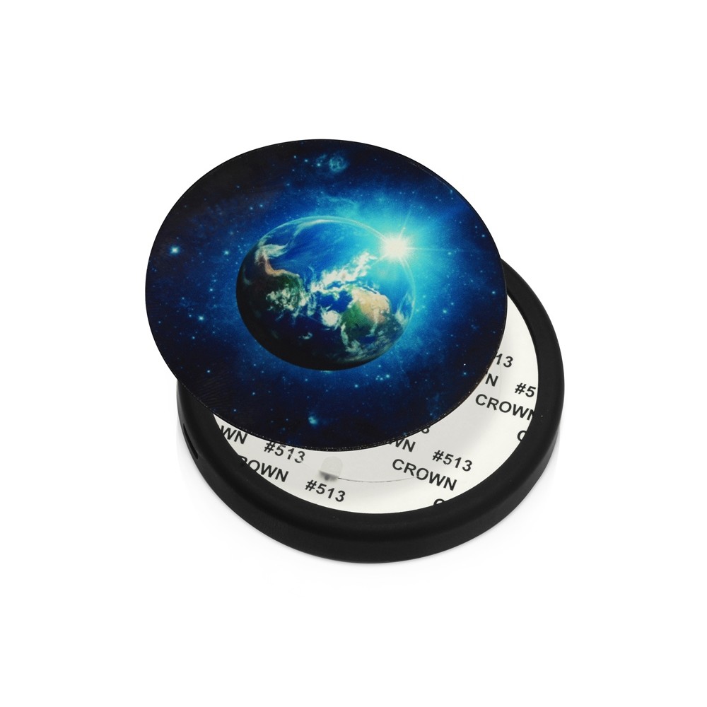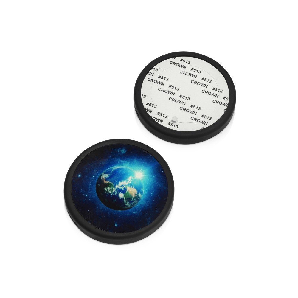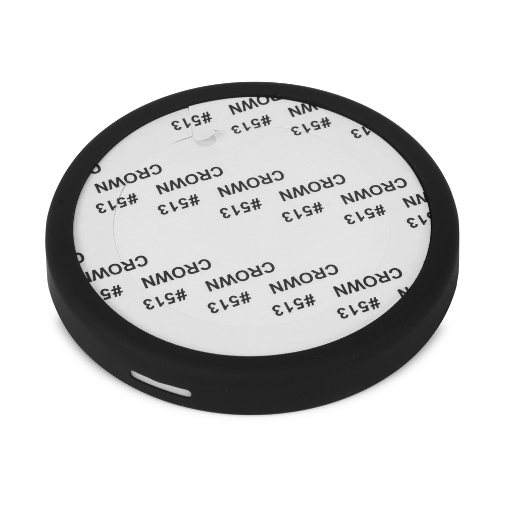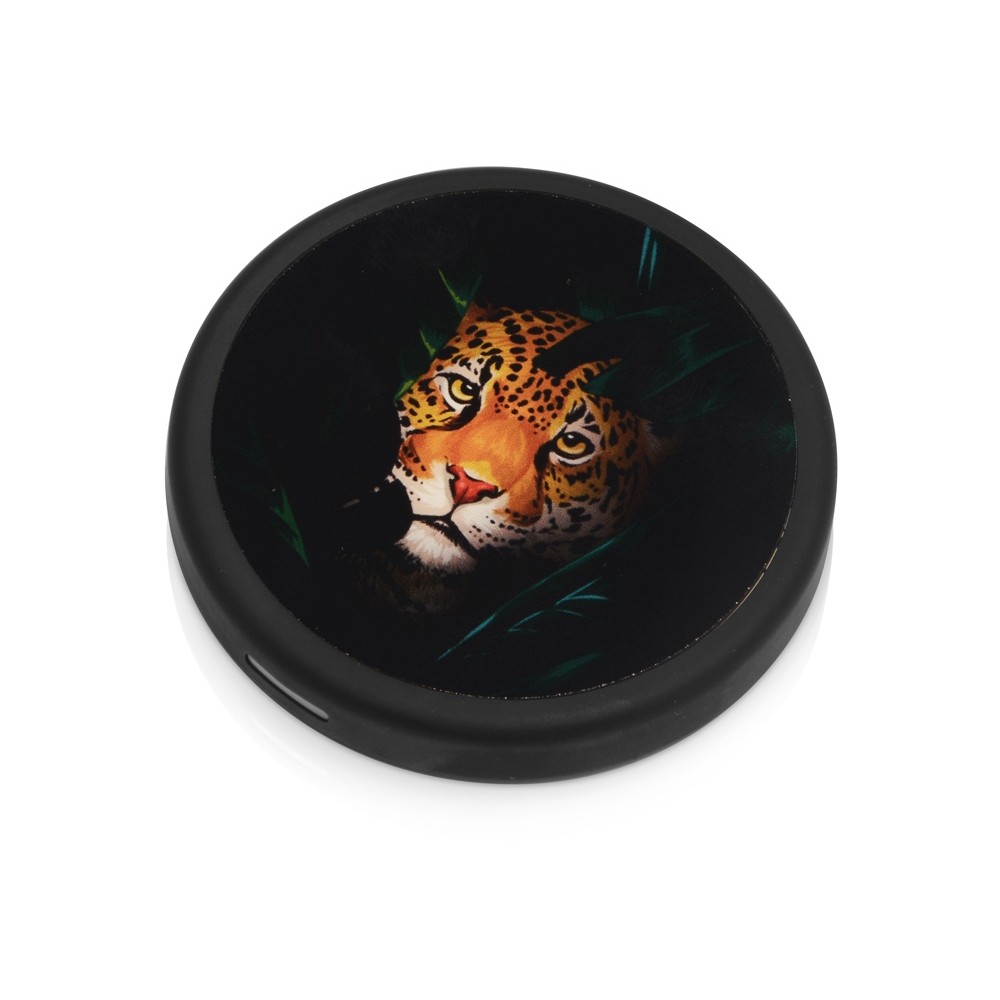 Благодаря миниатюрному размеру устройства и идеальной форме круга, вы не сразу угадаете его назначение. Этот предмет создан для тех, кто предпочитает гармонично встраивать технологии в ежедневную жизнь, деликатно скрывая их под маской обычных вещей. Главная функция устройства — беспроводная зарядка — реализуется качественно и бесперебойно. В комплекте с изделием в разобранном виде поставляется круглое закаленное стекло, на котором можно сделать красочное нанесение любого изображения. После запечатки стекло легко крепится на корпус устройства.