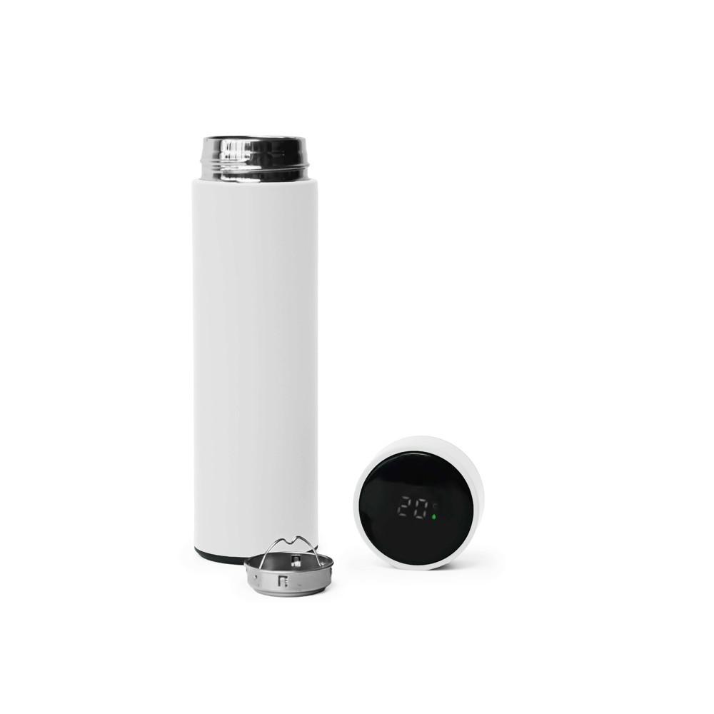 Термос из нержавеющей стали, покрытый цветным soft touch, с крышкой, в которой встроен термометр и LED дисплей, показывающий температуру внутри термоса. Объем: 500 мл. Упаковка: каждый термос в крафт коробке.