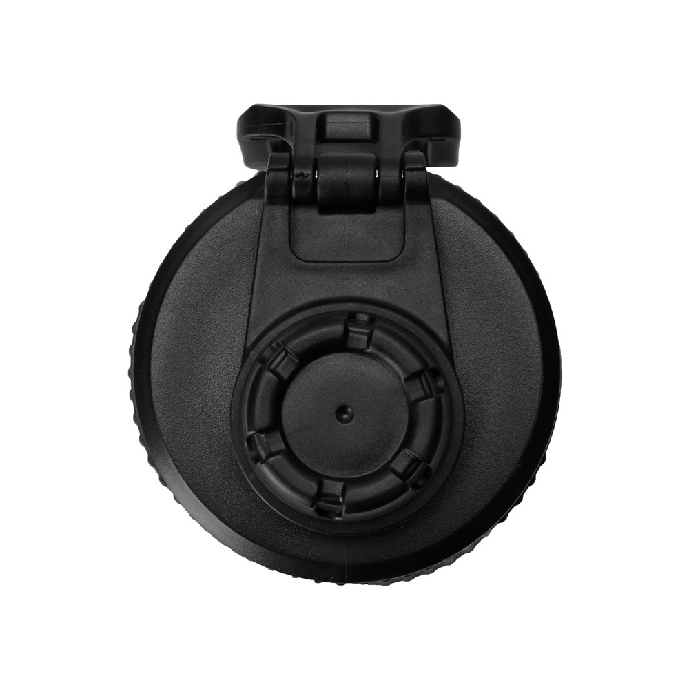 Крышка оснащена складной ручкой-держалкой, которая может быть использована для подвешивания или переноски, а также нетеряемым колпачком. Широкое питьевое отверстие позволяет быстро утолить жажду во время занятий спортом. Рельефное силиконовое кольцо по краю крышки поможет вам быстро и легко отвинтить ее от бутылки.