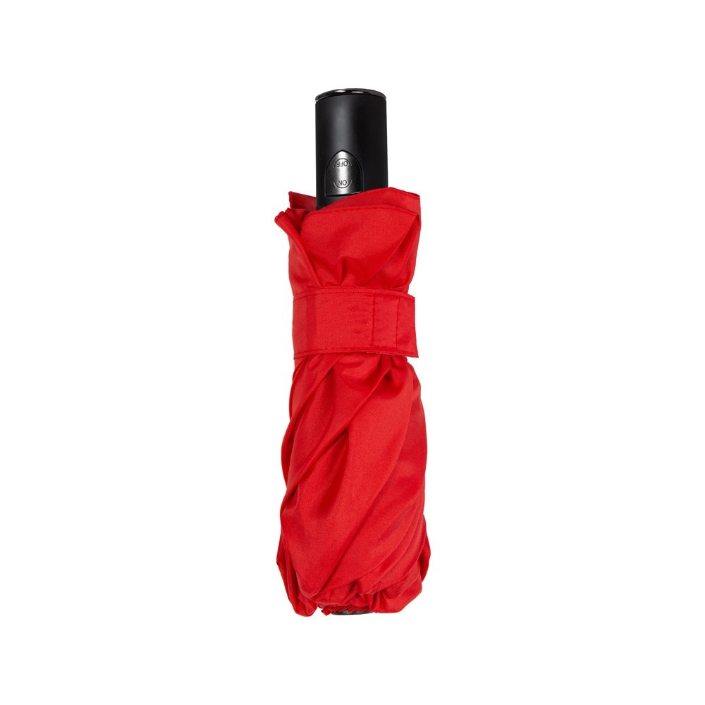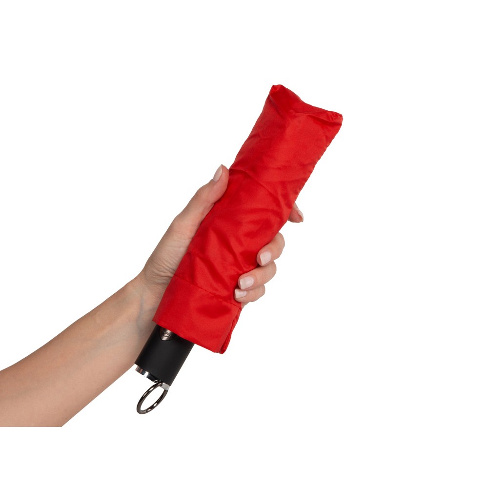 Самый компактный зонт-автомат. Длина в сложенном виде 25 см. Кольцо на ручке удобно для подвешивания зонта при сушке или хранении. Широкий фиксирующий ремешок дает дополнительные возможности для нанесения вашего логотипа.