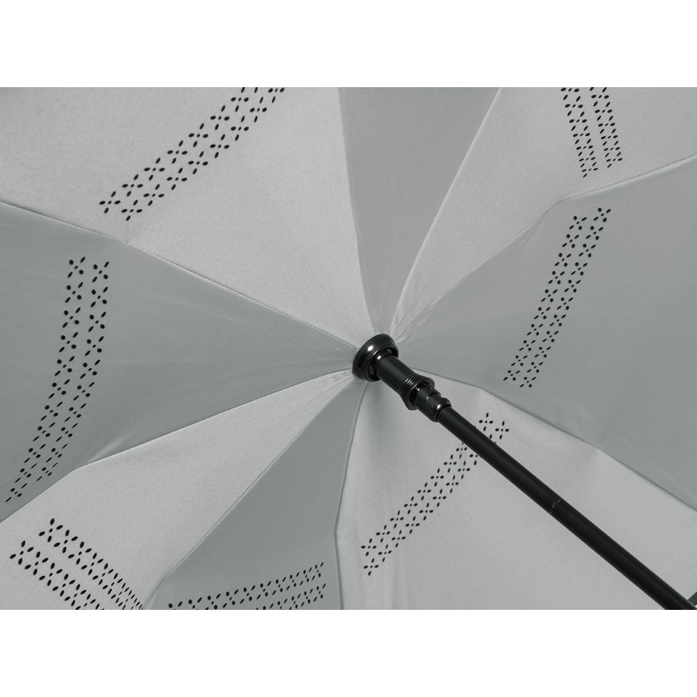 Зонт с обратным сложением складывается "внутрь". Очень удобен в использовании, например, во время посадки в машину при складывании вода остается внутри купола. Для просушки зонт можно поставить вертикально на пол в сложенном виде, что позволяет воде стекать без раскрытия зонта. Двойной купол из 190Т эпонжа. Ручка с мягким покрытием soft-touch для большего комфорта.