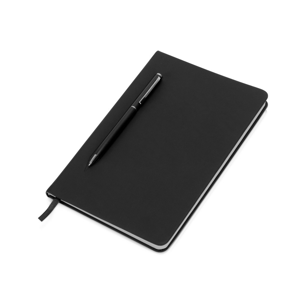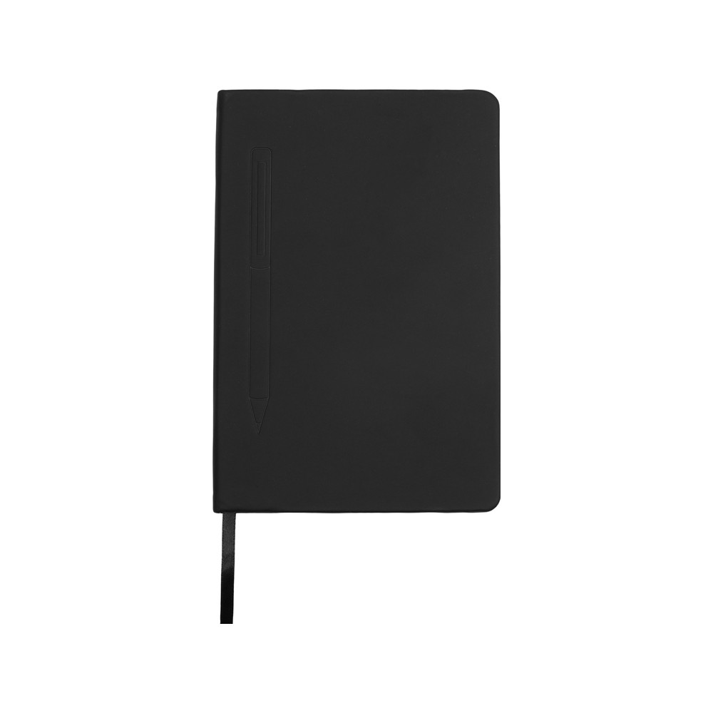 Блокнот формата А5 в твердой обложке со скруглёнными углами и блоком в линейку на 80 листов. Благодаря скрытой магнитной ленте на блокноте можно легко и надежно закрепить металлическую ручку. Зона с магнитом обозначена тиснением в форме ручки.