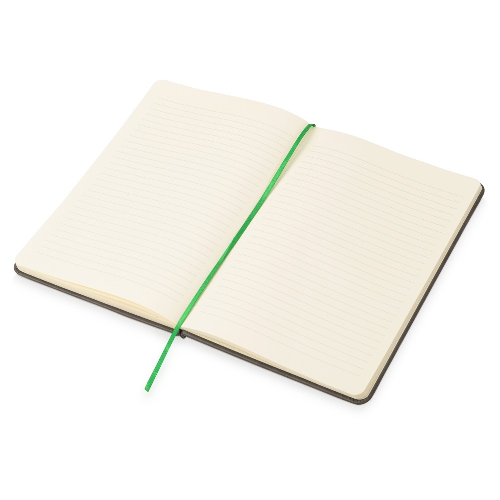 На складе Код товара: 787003 Блокнот «Color» линованный А5 в твердой обложке с резинкой, серый/зеленое яблоко
