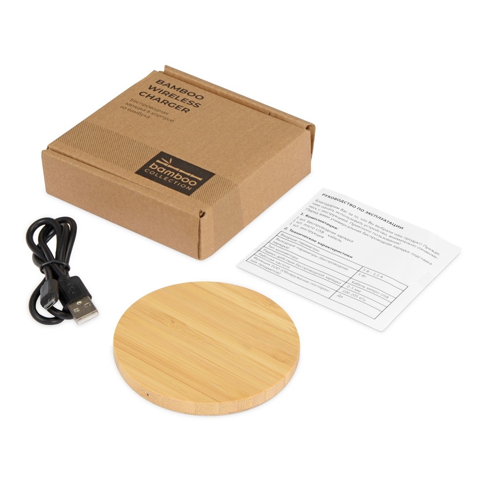 Технические характеристики Беспроводное зарядное устройство из бамбука "Cap", натуральный