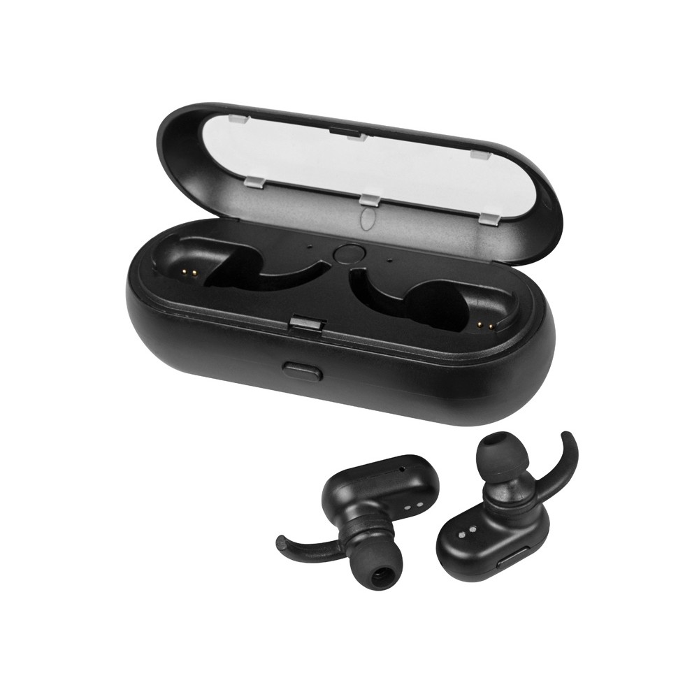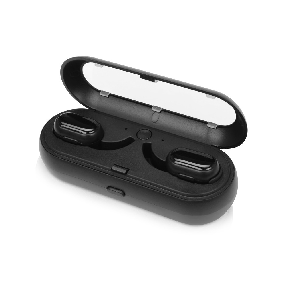 Емкость элементанаушники- 2*40 mAh, зарядная станция- 600 mAh Комплектность2 беспроводных наушника, зарядная станция, чехол, кабель micro-USB, амбушюры- 3 пары, инструкция Материал товарапластик