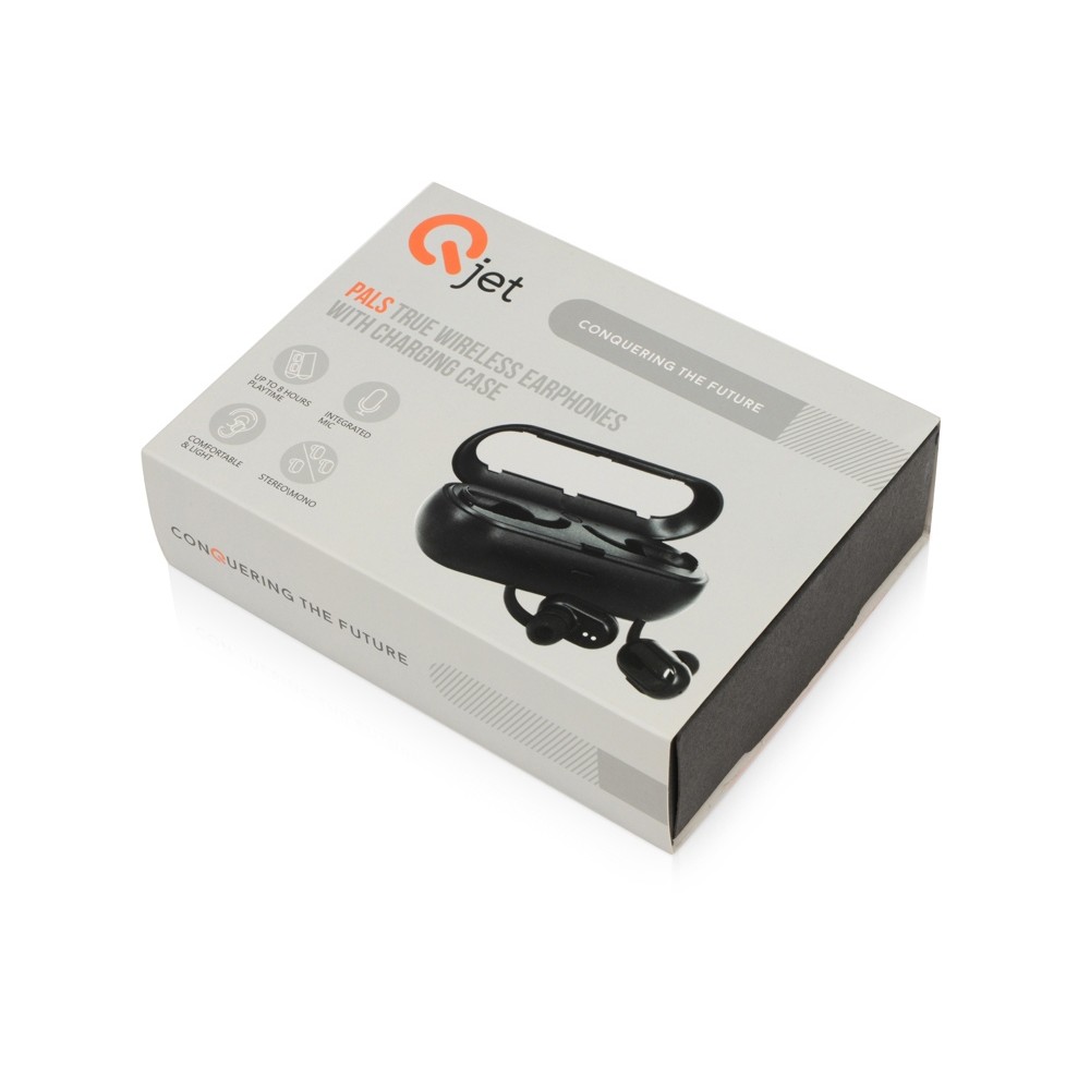 Беспроводные наушники "Pals" от Qjet - это современные технологии в компактной привлекательной форме. Наушники порадуют качественным объемным звучанием и легкой эргономичной формой, а благодаря зарядному кейсу суммарное время воспроизведения достигает 8 часов. Зарядный чехол-повербанк легко помещается в карман куртки, сумки или рюкзака. Поддерживают режим hands-free. Управление звонками и воспроизведением музыки осуществляется через многофункциональную кнопку на наушнике. Каждый из 2 наушников может быть декорирован любым изображением с помощью заливки смолой. В комплекте 2 наушника, зарядный кейс, набор сменных амбушюр, мешочек, зарядный кабель, подробная инструкция и 2 стикера-накладки на случай ,если заливка смолой не требуется.