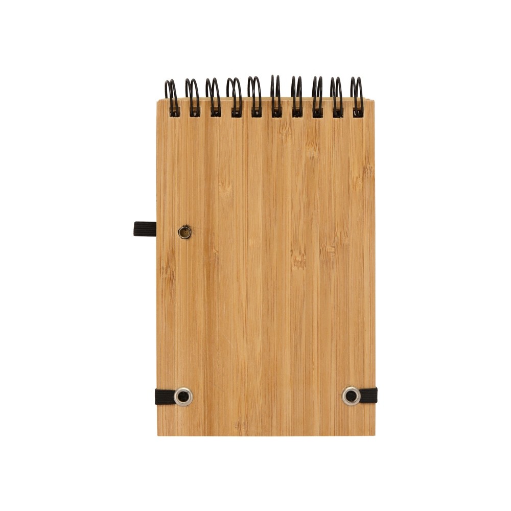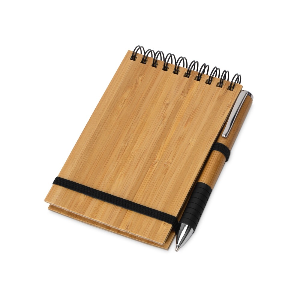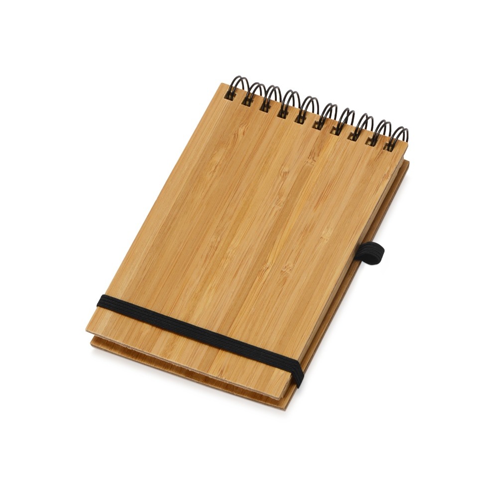 Оригинальный блокнот с обложкой из бамбука и картона, а также блоком из переработанной бумаги. Петля для ручки и горизонтальная резинка расширяют функциональность.