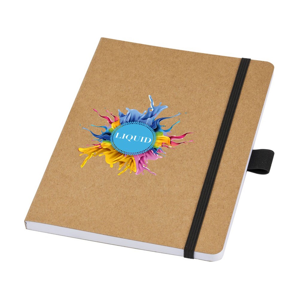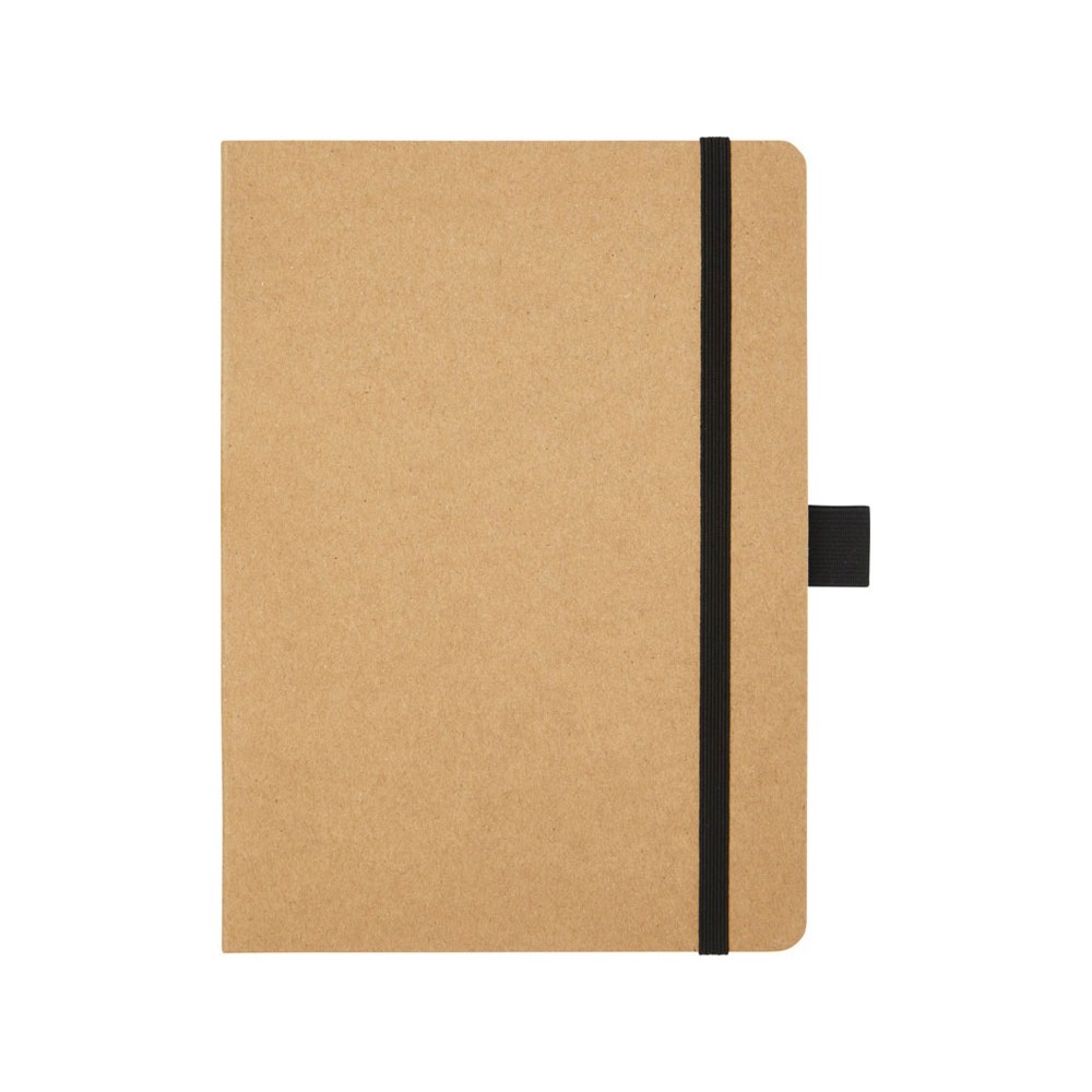 Блокнот формата из линованной переработанной бумаги (70 г/м²) с закругленными углами, цветной резинкой и петлей для ручки, соответствующей 107384 цветам ручки.