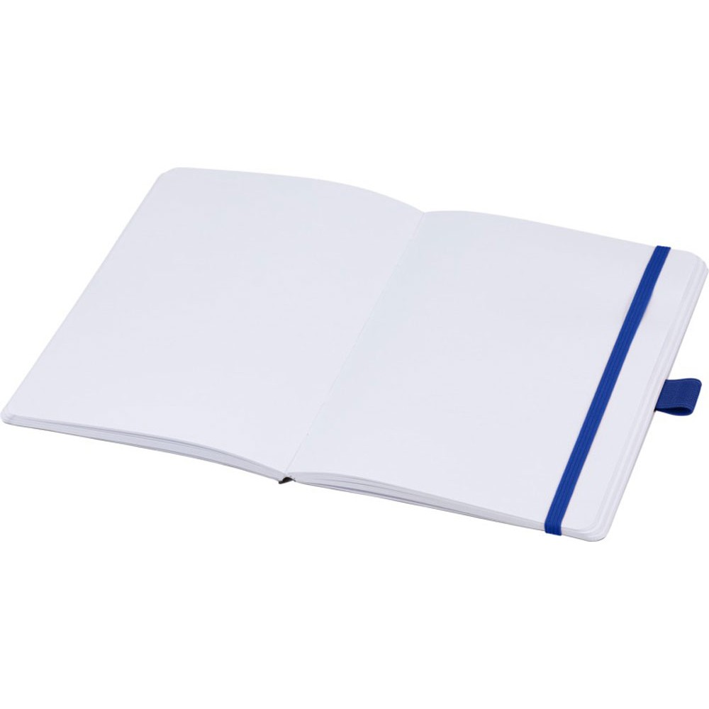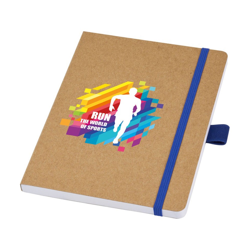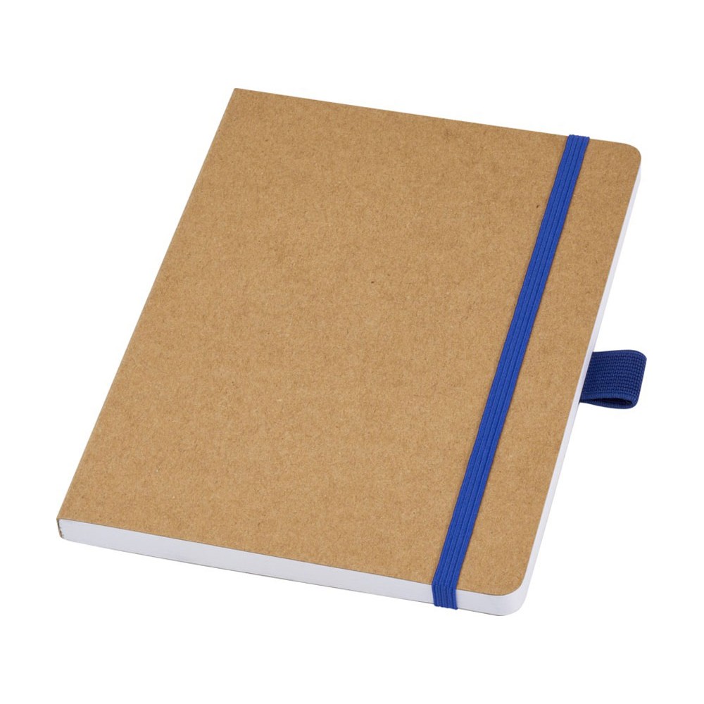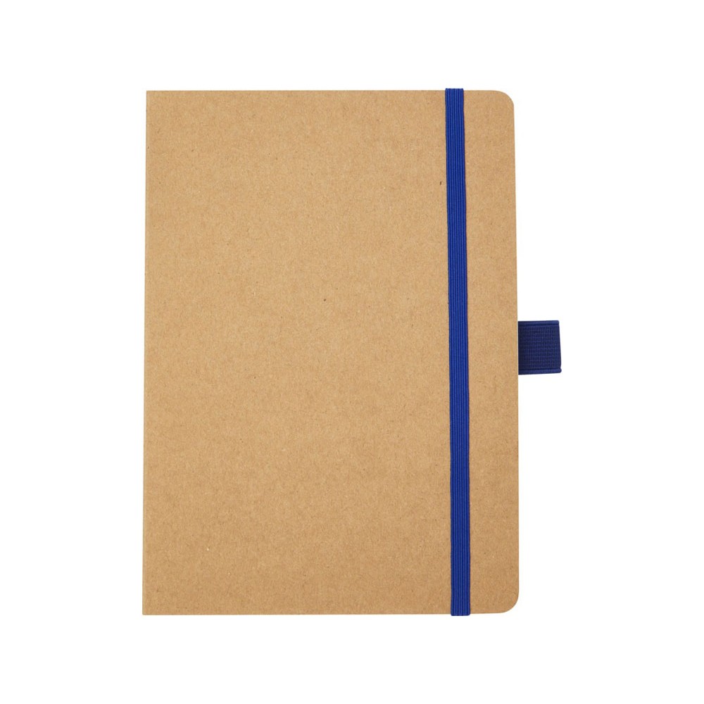 Блокнот формата из линованной переработанной бумаги (70 г/м²) с закругленными углами, цветной резинкой и петлей для ручки, соответствующей 107384 цветам ручки.