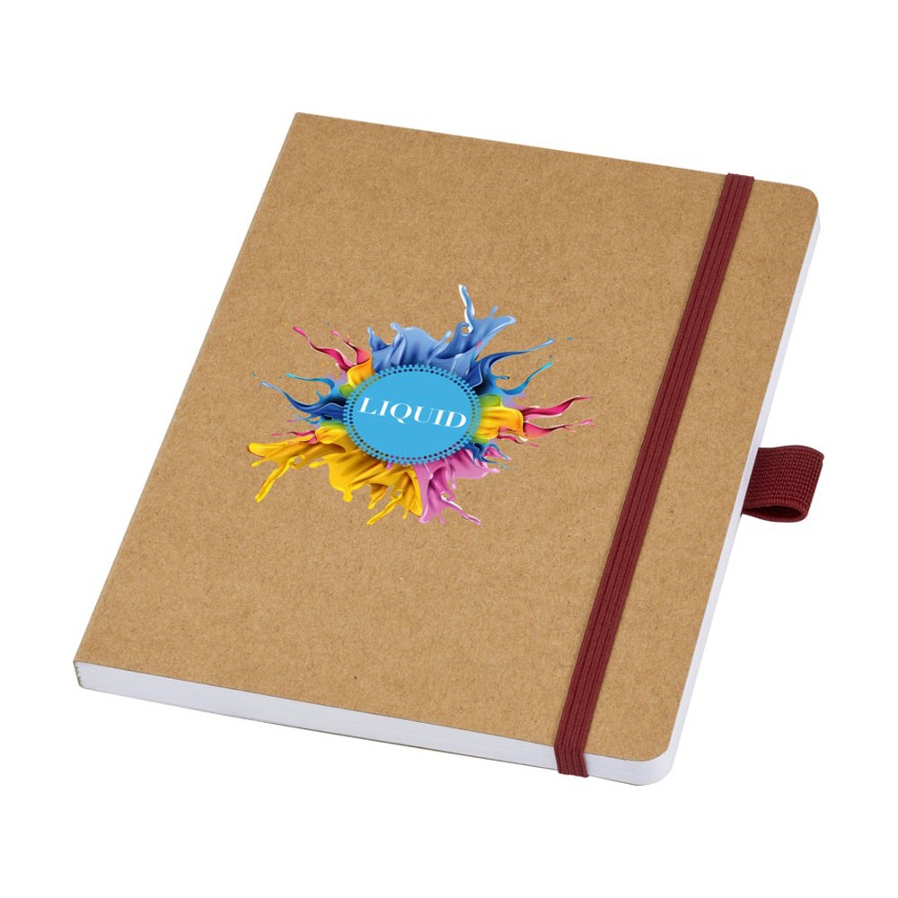 Блокнот формата из линованной переработанной бумаги (70 г/м²) с закругленными углами, цветной резинкой и петлей для ручки, соответствующей 107384 цветам ручки.
