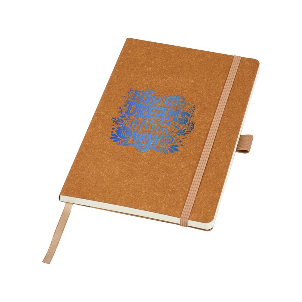 Блокнот из переработанной кожи с эластичным ремешком, петлей для ручки, закладкой, карманом из крафт-бумаги и 80 линованными листами кремового цвета из бумаги, переработанной по стандарту (70 г/м²). Обложка из переработанной кожи является стильным и износостойким верхним слоем, защищающим страницы внутри. Одним из преимуществ использования блокнота из переработанной кожи является комбинация стиля и экологичности. Уникальная текстура и внешний вид переработанной кожи придают каждому блокноту отличительный характер и индивидуальность.