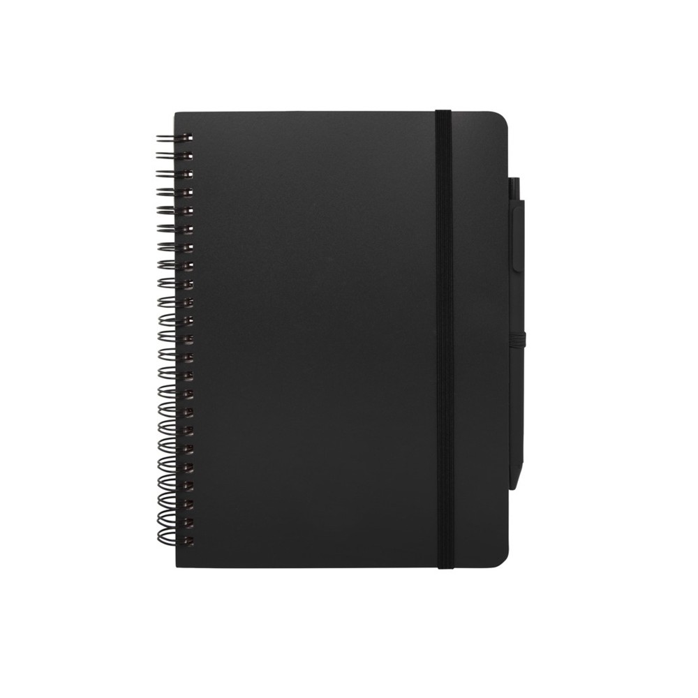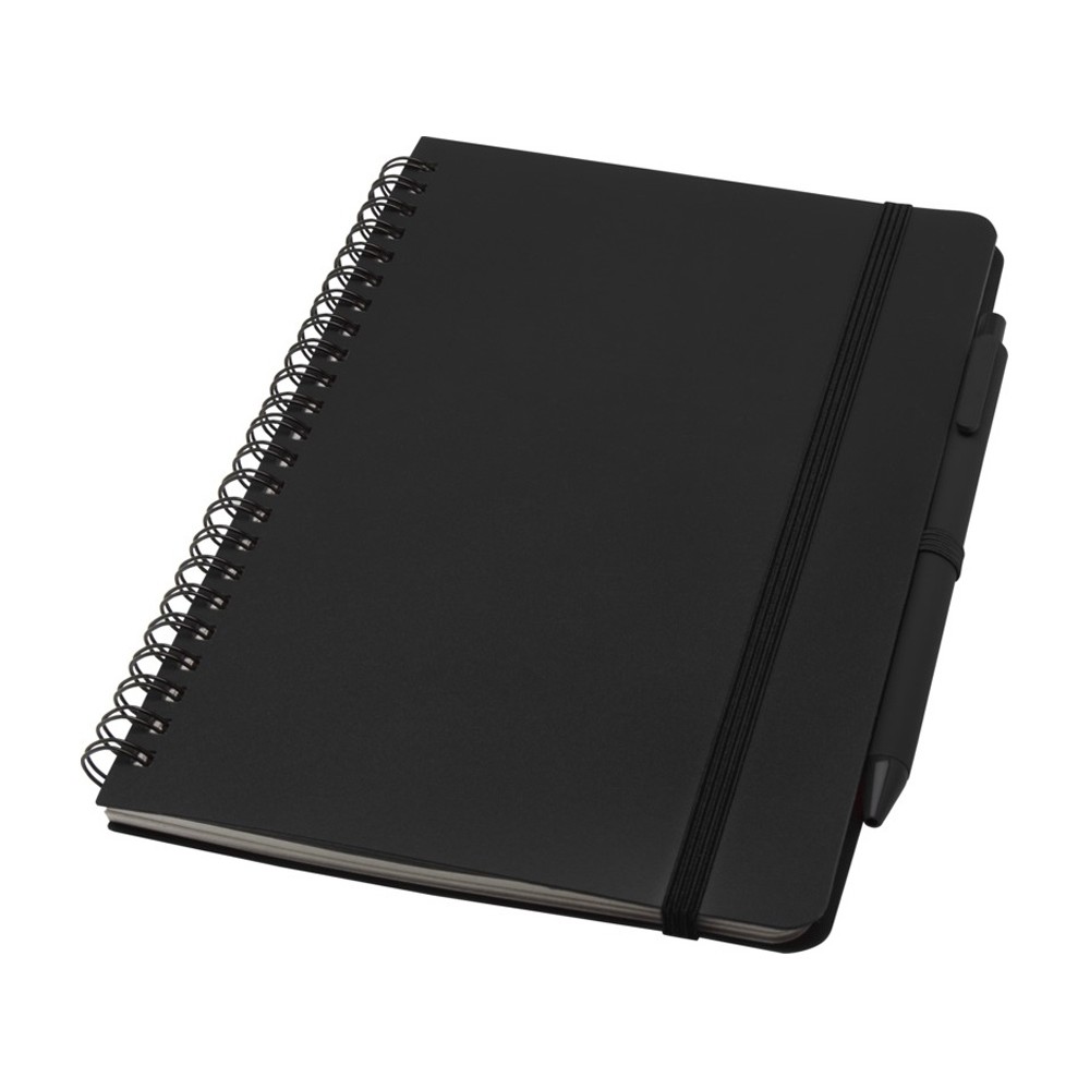 Блокнот Thalaasa формата А5 в твердой обложке из океанического пластика с шариковой ручкой - сплошной черный