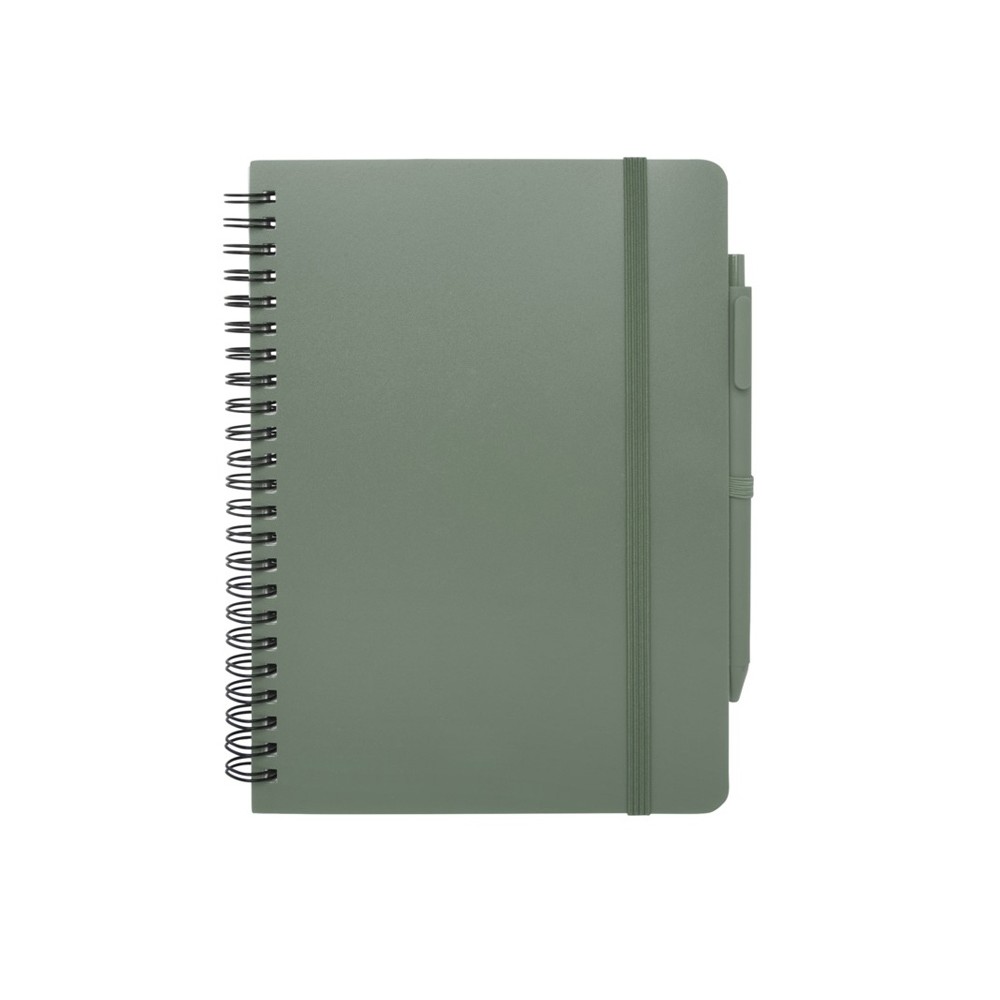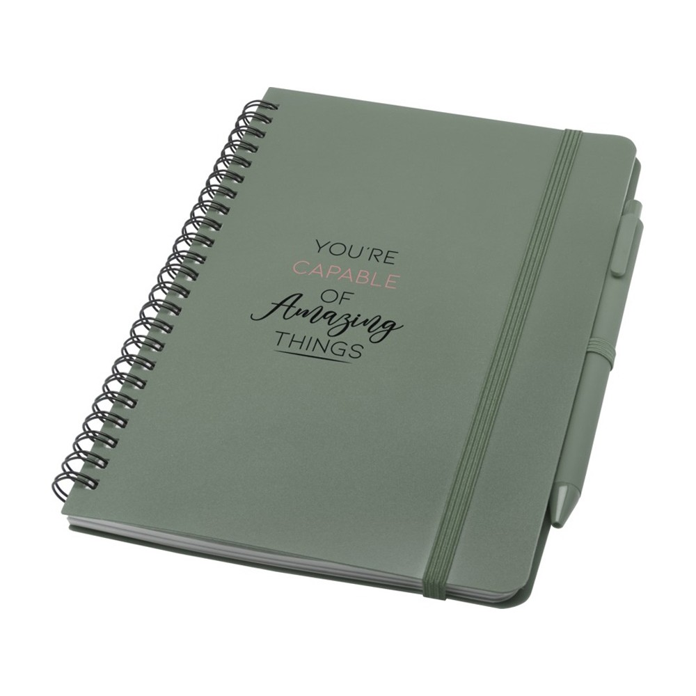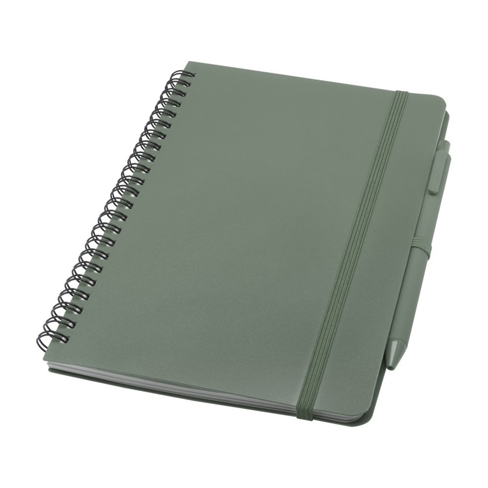 Блокнот Thalaasa формата А5 в твердой обложке из океанического пластика с шариковой ручкой - Зеленый яркий
