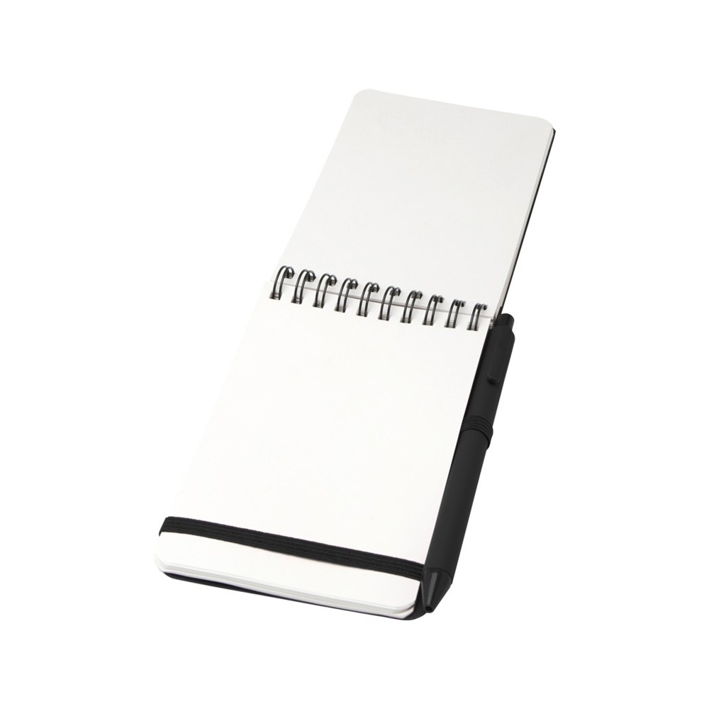 Блокнот Thalaasa формата А6 в твердой обложке изготовлен из переработанного океанического пластика и содержит 80 линованных листов кремовой бумаги плотностью 70 г/м². Блокнот имеет закругленные углы, эластичную застежку и петлю для ручки. Шариковая ручка с черными чернилами также изготовлена из переработанного океанического пластика. Длина непрерывной линии: 1000 метров. Размер пера: 1,0 мм.