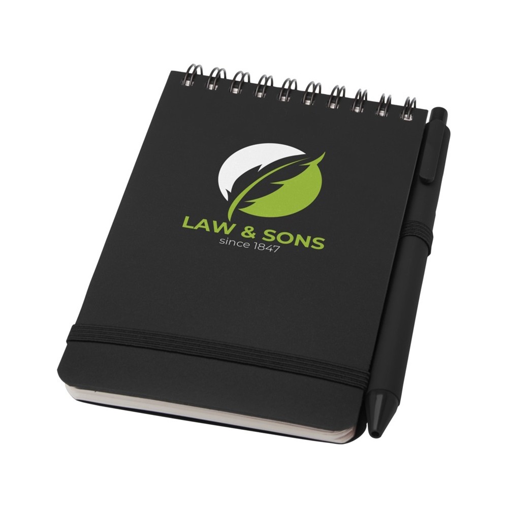 Блокнот Thalaasa формата А6 в твердой обложке из океанического пластика с шариковой ручкой - сплошной черный