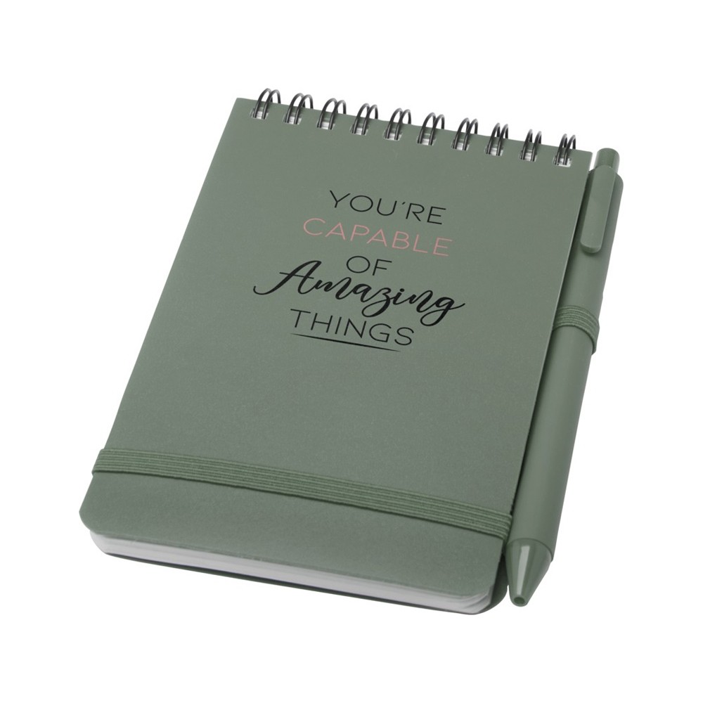 Блокнот Thalaasa формата А6 в твердой обложке из океанического пластика с шариковой ручкой - Зеленый яркий