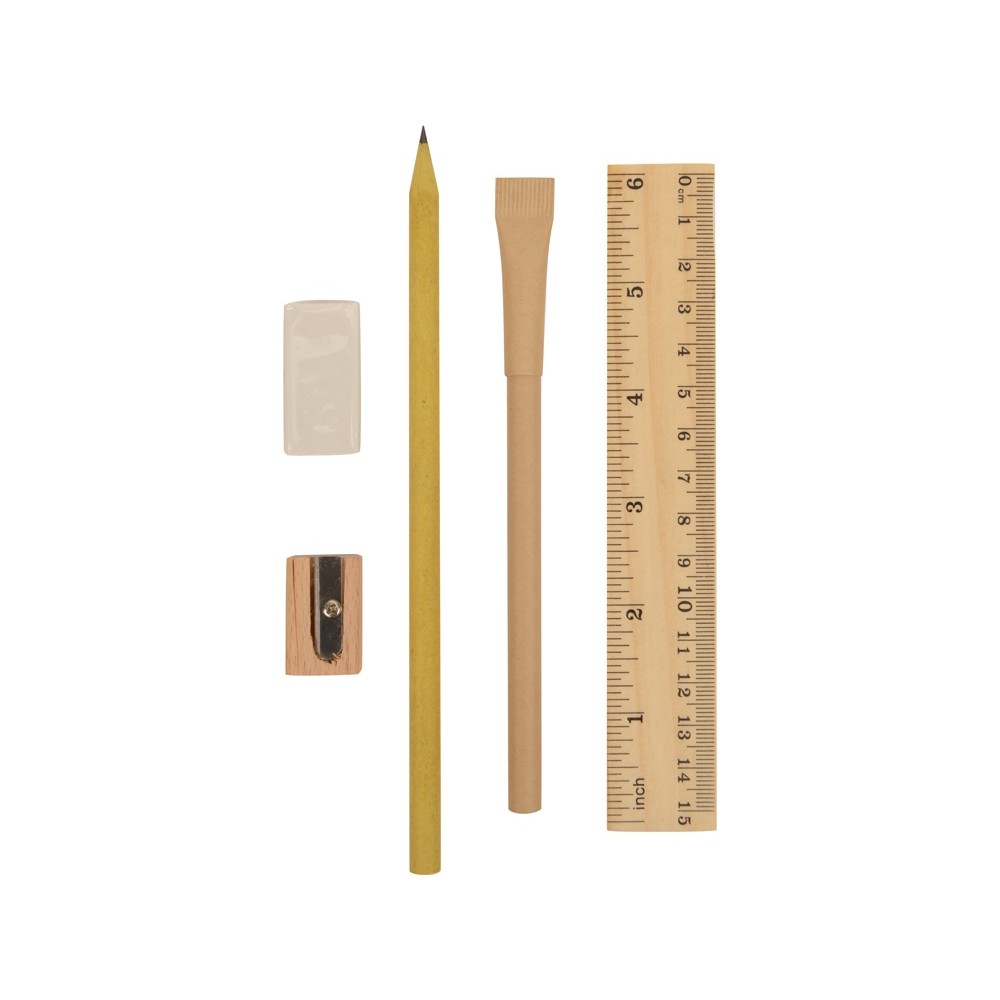 Вес60 Комплектностьлинейка 15 см, точилка, карандаш, ручка шариковая, ластик Материал товаракартон